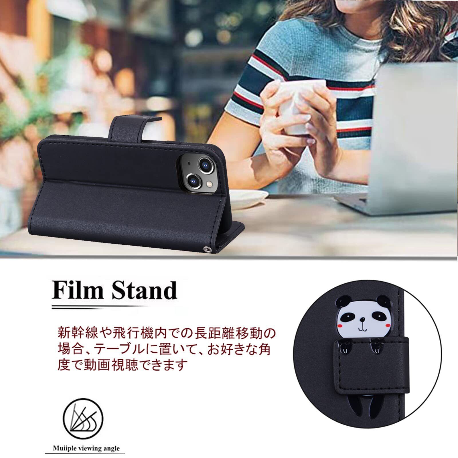 Mectoo iPhone13 mini ケース手帳型 iPhone 13 mini ケース iPhone13ミニ手帳型 ケース アイフォン 13ミニ ケース スマホケース カバー 携帯ケース 携帯カバー あいふぉん13ミニ PUレザー 柔らかいTPUケース 肌触り良い革 ストラップ付き カード収納 財布型 ベルトマグネット スタンド機能 パンダ かわいい 動物柄 薄型 防水 ノート型 女性 男性 おしゃれ 男女兼用 黒 (iPhone13mini 5.4inch対応)ブラック