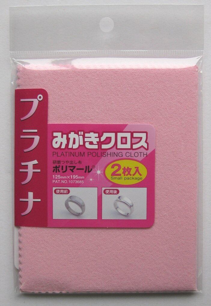 プラチナ製品の小さなキズの除去・汚れ落し・ツヤ出し 小さなキズ・汚れを簡単に落とし光沢を蘇らせます。微粒子の研磨材とつや出しワックスを含ませた研磨つや出し布 ピンク 本体サイズ:125×195ミリ 2枚入 スモールパッケージ 綿布 研磨材:アルミナ ワックス 高級脂肪酸