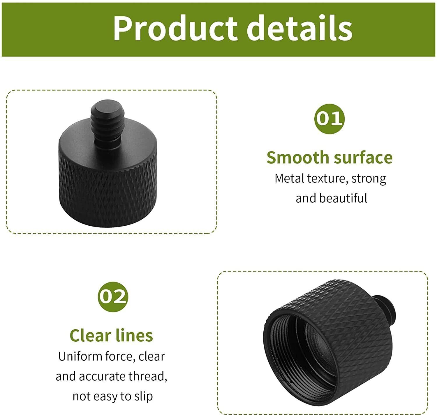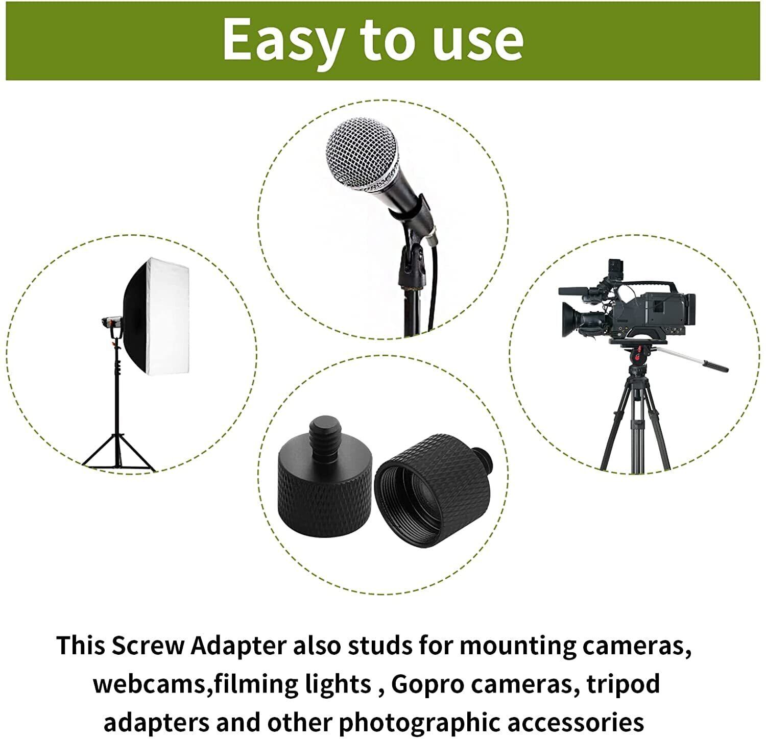【幅広い用途】変換コネクタは、カメラ、レコーダー、マイクスタンドなどの付属品に使用されます。小さなネジが付いているマイクスタンドやブームアームがあるのに、マイクに大きなネジがある場合は、これがアダプターです。
