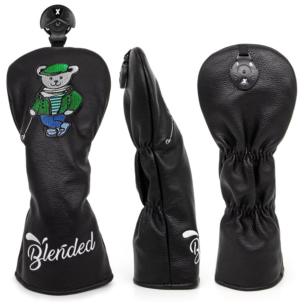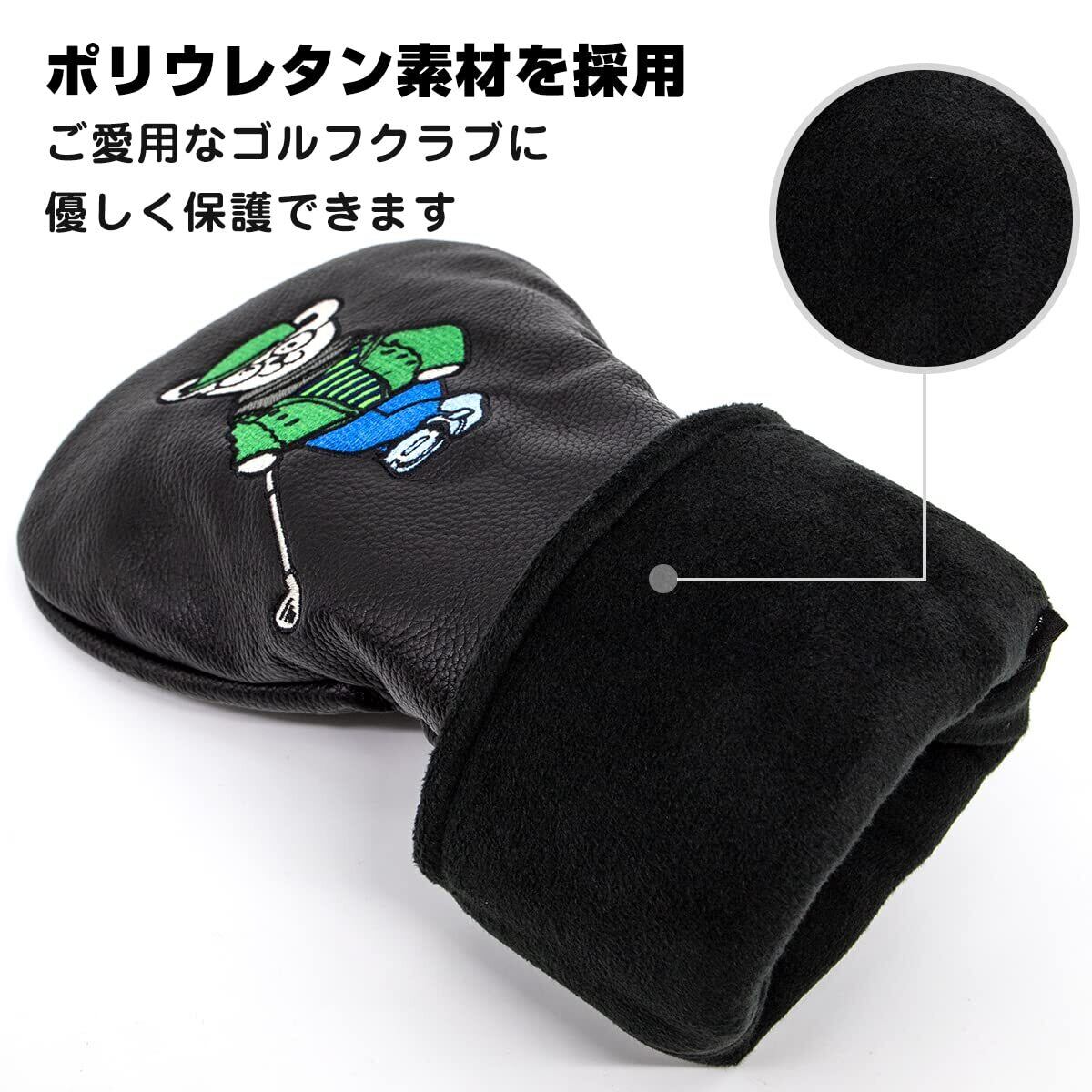ゴルフクラブヘッドカバー ウッドカバー Bearゴルフ先生ドライバー フェアウェイウッド ユーティリティ ハイブリッド用ヘッドカバー 番号タグ付き ゴルフヘッドカバー PUレザー製 おしゃれ クマ刺繍 ブラック | BASE SHOP