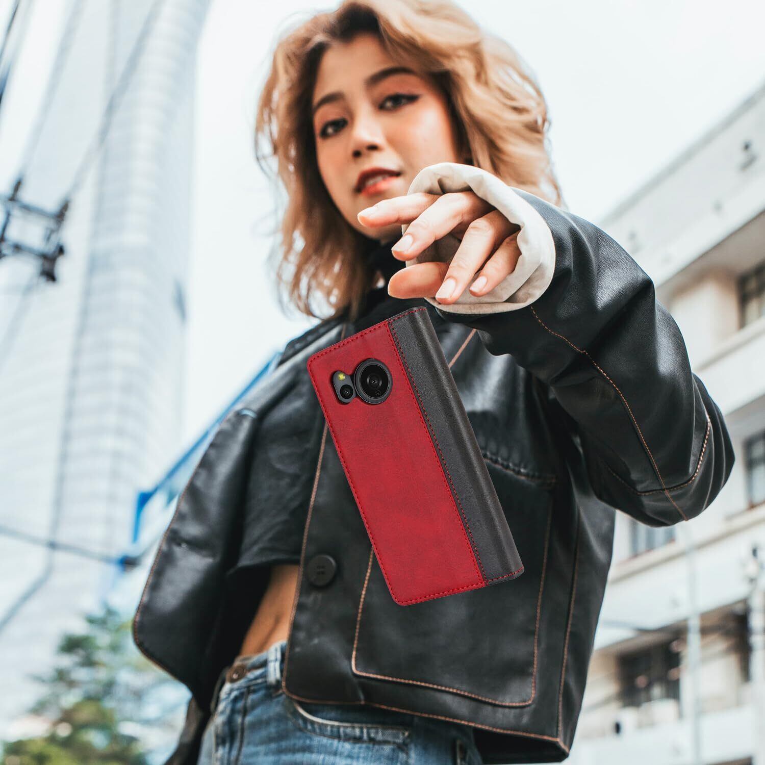 Havaya AQUOS sense8 ケース aquosセンス8 ケース SH-54D ケース 手帳型 docomo SHG11 耐衝撃 シャープ Sharp アクオス カバー au SH-M26 SoftBank 楽天モバイル カード収納 レザー-レッド+ブラック | BASE SHOP