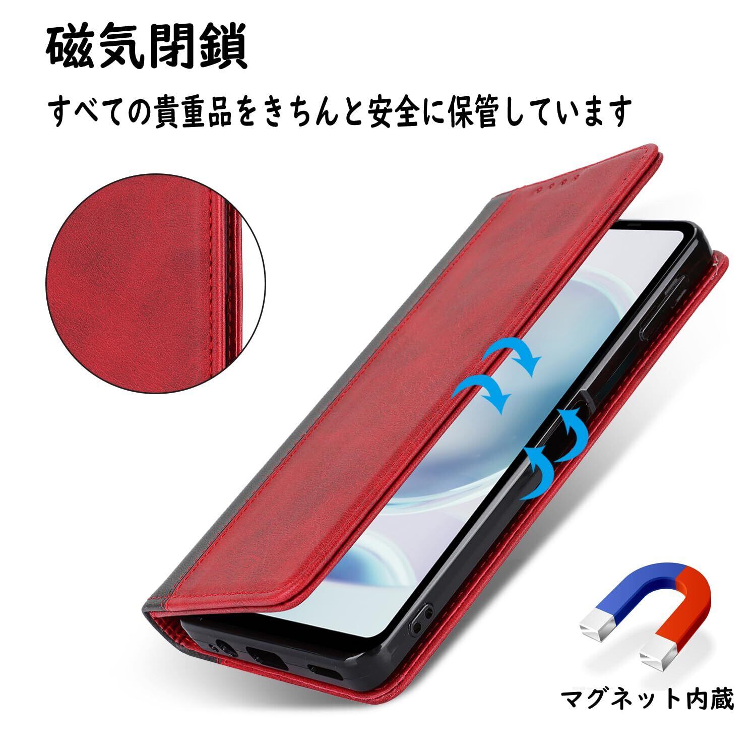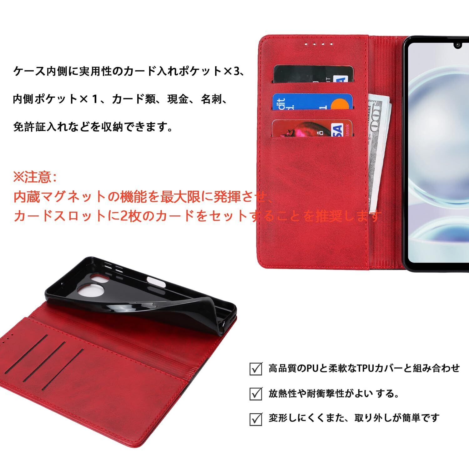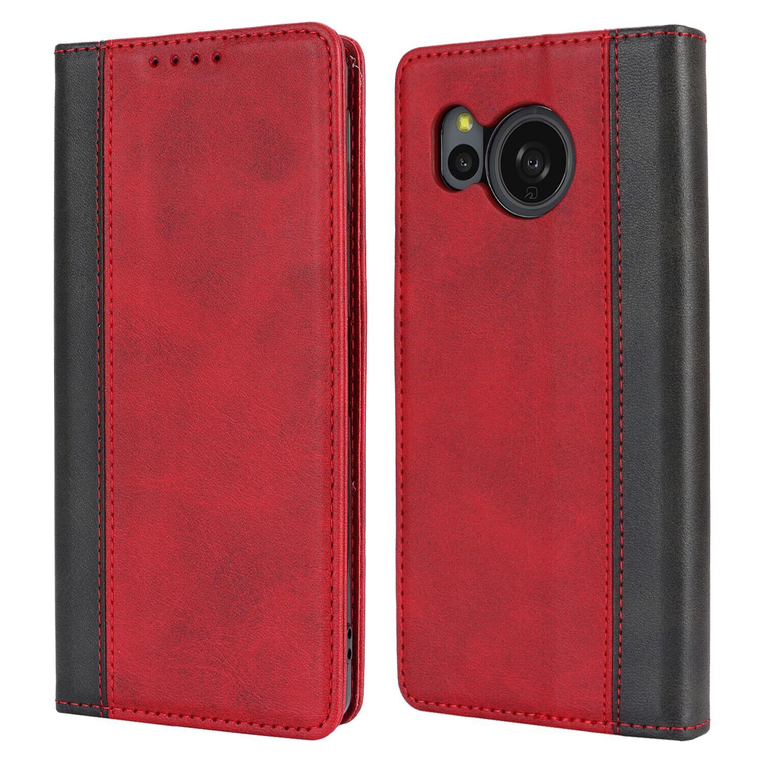 Havaya AQUOS sense8 ケース aquosセンス8 ケース SH-54D ケース 手帳型 docomo SHG11 耐衝撃 シャープ Sharp アクオス カバー au SH-M26 SoftBank 楽天モバイル カード収納 レザー-レッド+ブラック