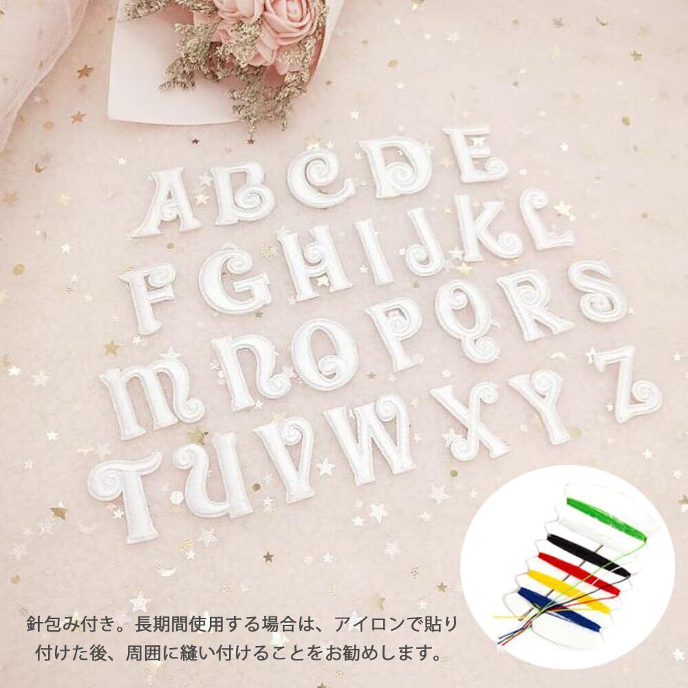 【パッケージ内容】アルファベットの 刺しゅうワッペン26枚セット。(針包み付き)。