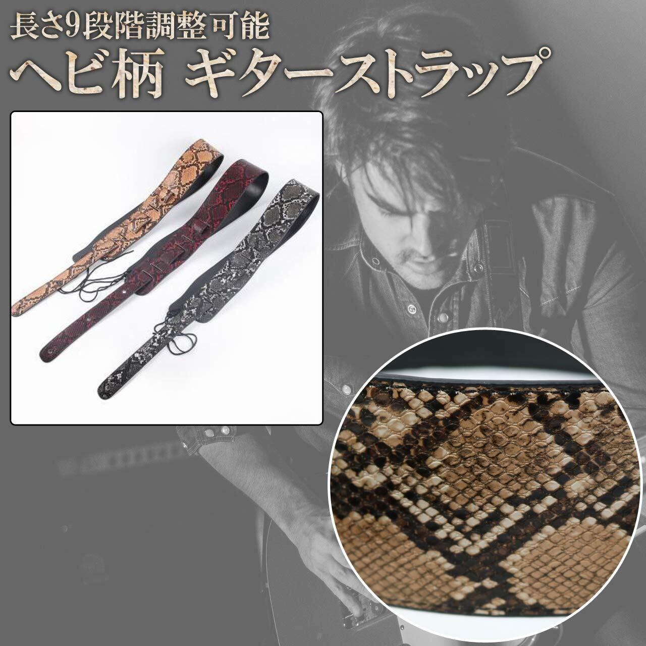 ギターストラップ ヘビ柄 長さ調整可能 アコースティック エレキギター