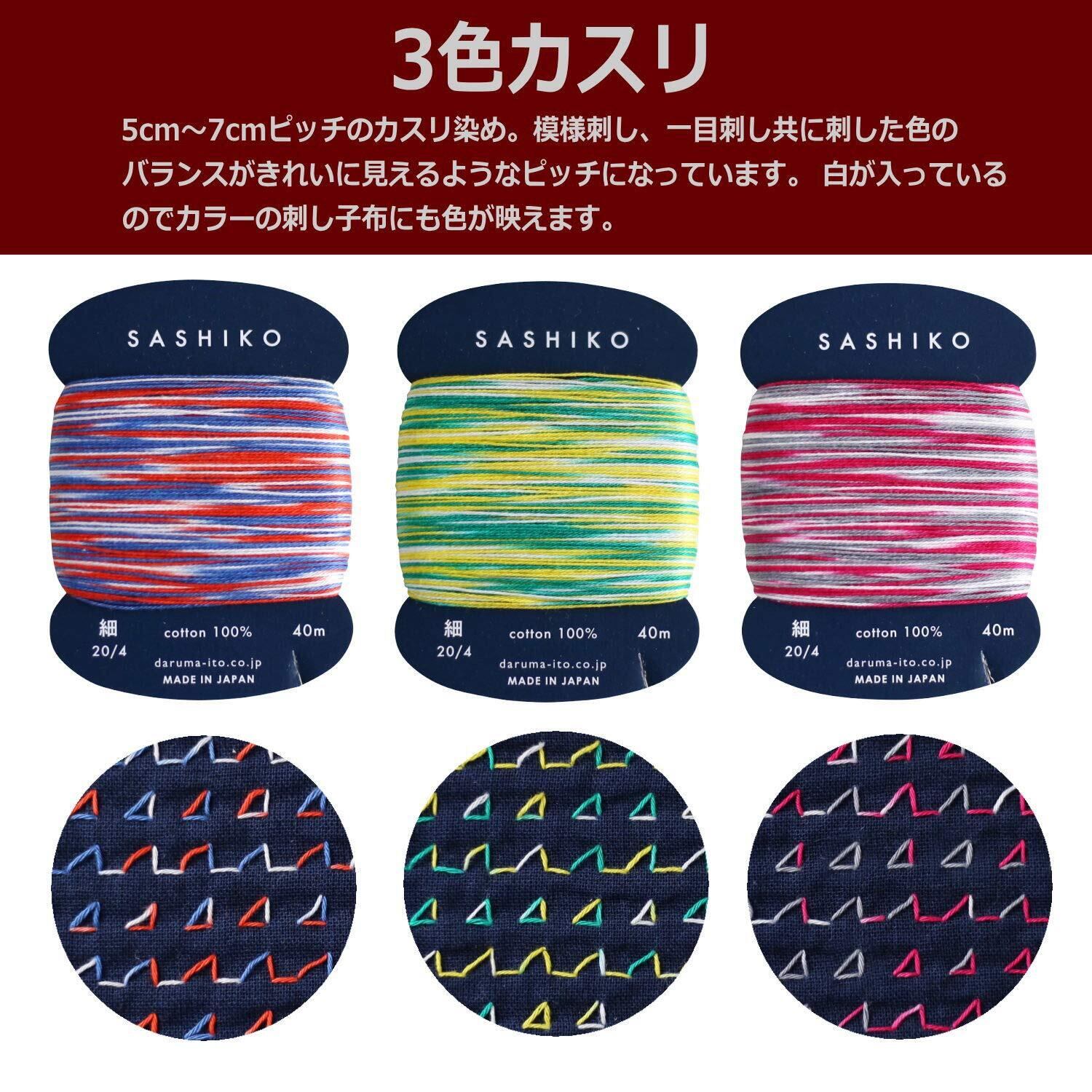 ダルマ 刺し子糸 綿100% カードタイプ (40m)×カスリ8種 刺し子マニュアル付き 裁縫&刺繍 バリューセット ギフトボックス入り (カスリ)