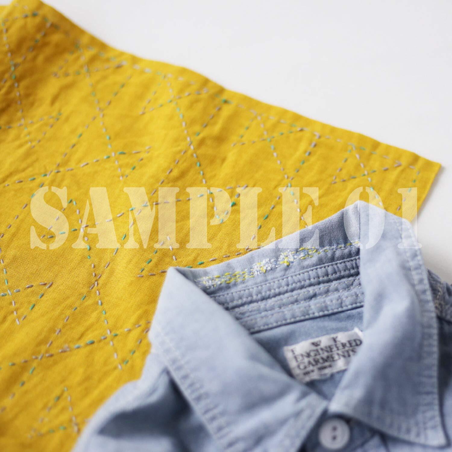 2色カスリ: 点々とした色が浮かぶカスリ染め。模様を刺すのはもちろん、並縫いのようにランダムに刺すのもおすすめです。 所どころに鮮やかな色が浮かび上がり、単調な柄でもアクセントになります。
