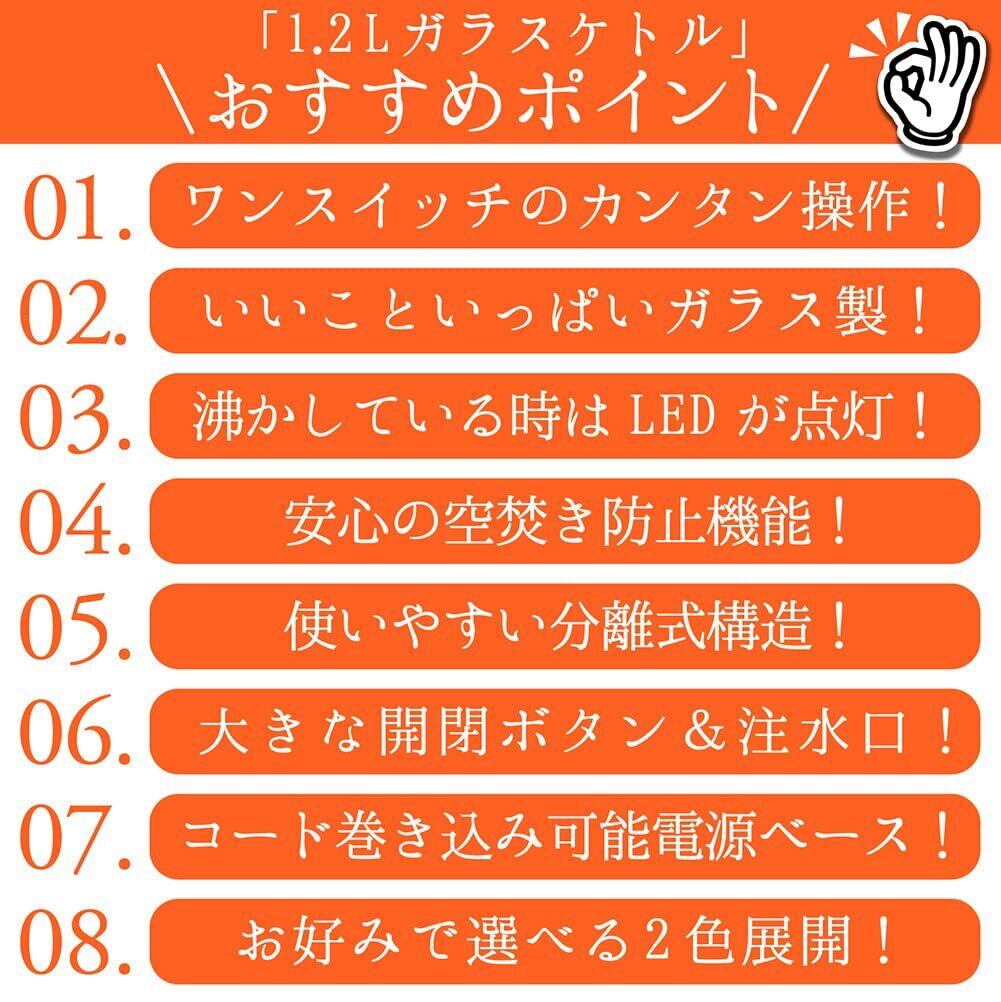 【FaFe】ガラスケトル 1.2L ガラス電気ケトル オシャレなLED点灯 ワンスイッチ 耐熱ガラス 電源分離式 空焚き防止 自動電源OFF コード巻き込み (ブラック)