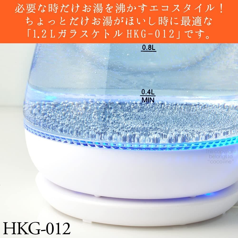 お湯を沸かしているときは青いライトが点灯します。オシャレなLED点灯。お湯が沸くと自動で電源OFF。