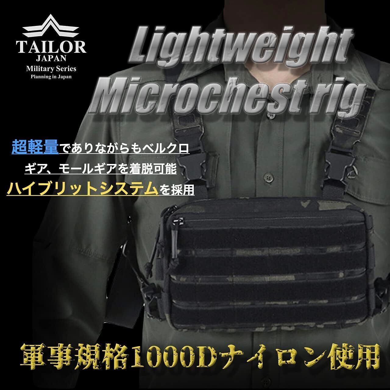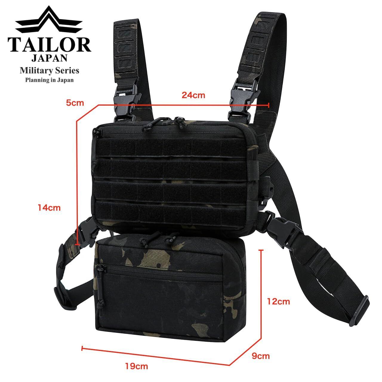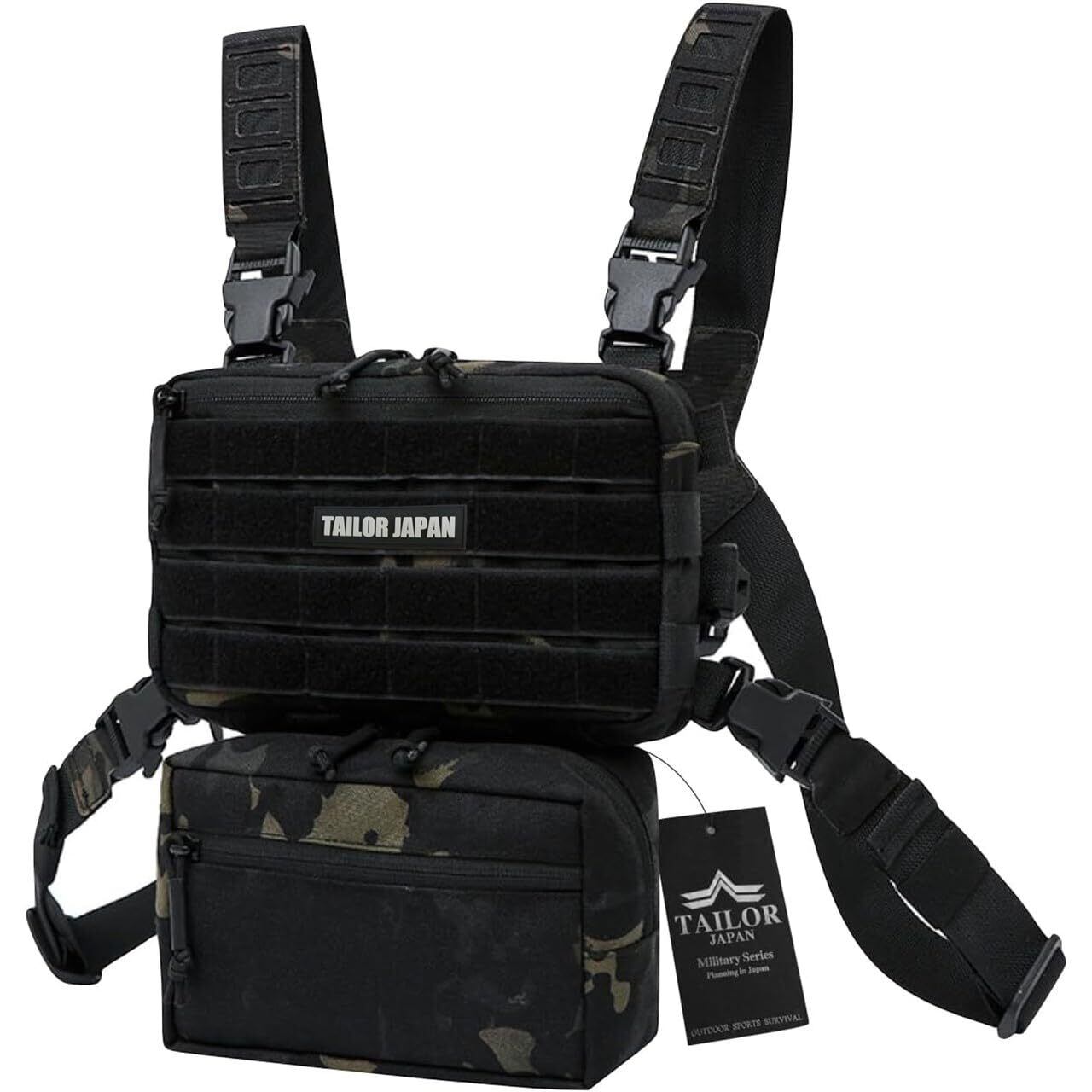 【TAILOR JAPAN】マイクロチェストリグ チェストリグ タクティカルベスト サバゲーベスト 軽量 ベルクロ モール ハイブリットシステム 1000Dナイロン バックパック拡張機能 ウエストサポートベルト付き (ブラック迷彩/ポーチ付き) | BASE SHOP