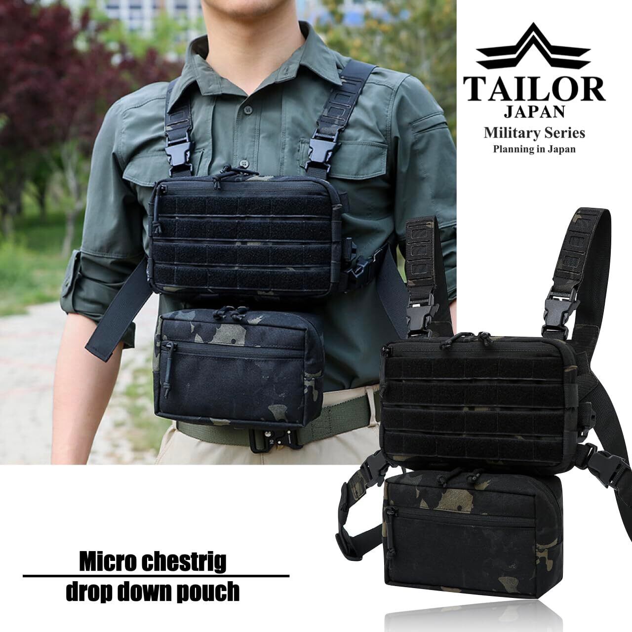 【TAILOR JAPAN】マイクロチェストリグ チェストリグ タクティカルベスト サバゲーベスト 軽量 ベルクロ モール ハイブリットシステム 1000Dナイロン バックパック拡張機能 ウエストサポートベルト付き (ブラック迷彩/ポーチ付き)