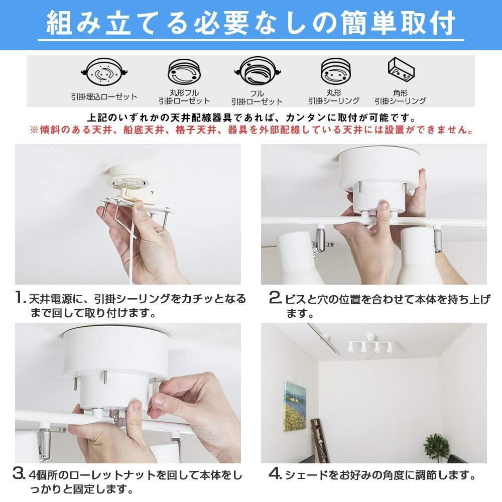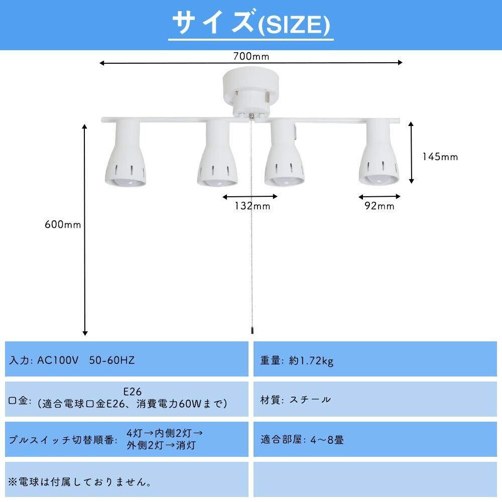 Jiya シーリングライト 4灯 E26口金 LED電球対応 シーリングスポットライト インダストリアル 天井照明 北欧 おしゃれ カフェ風 取付簡単 角度調節 プルスイッチ リビング 寝室 居間 ダイニング照明 電球別売 ホワイト | BASE SHOP