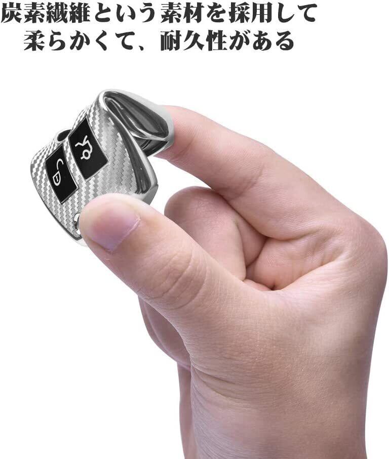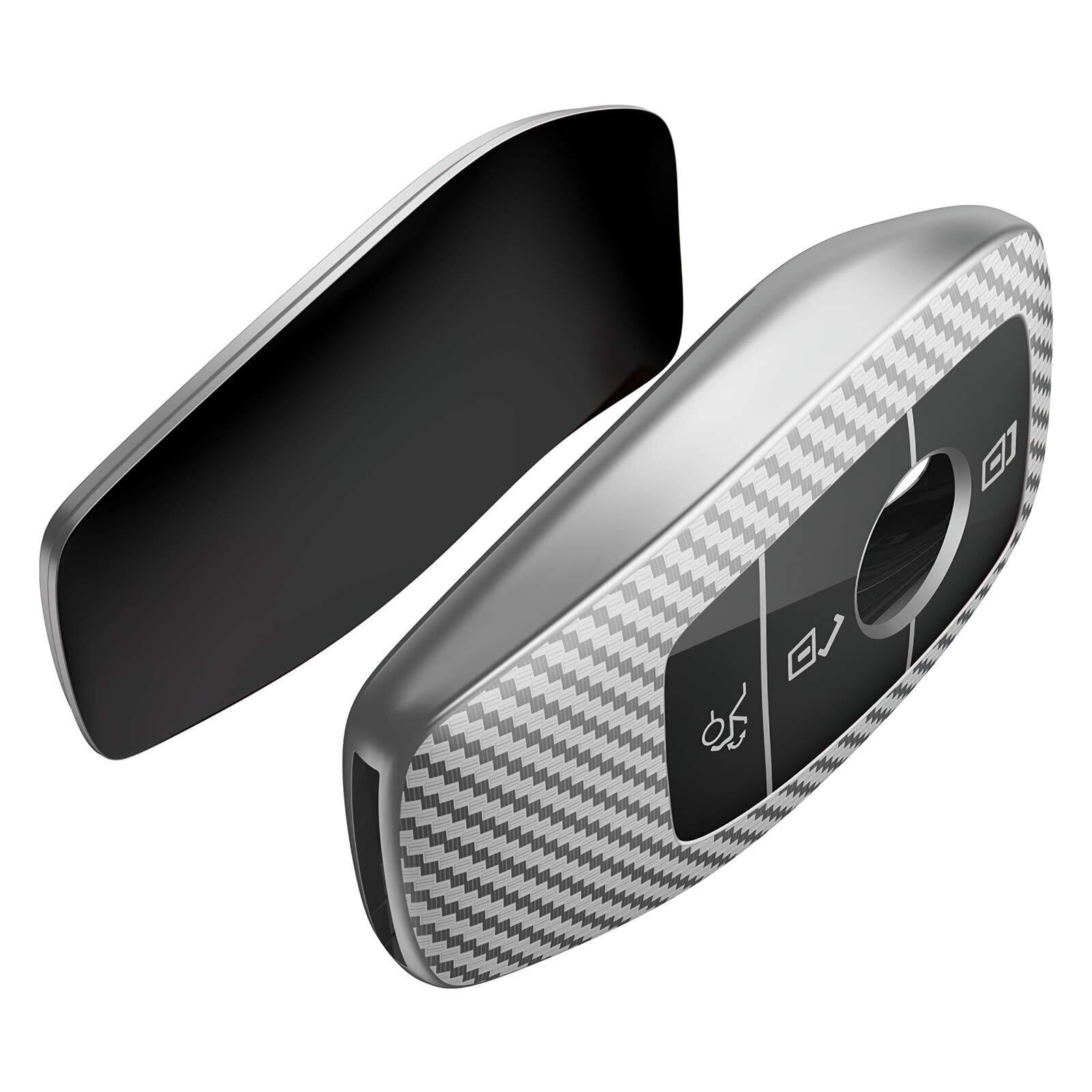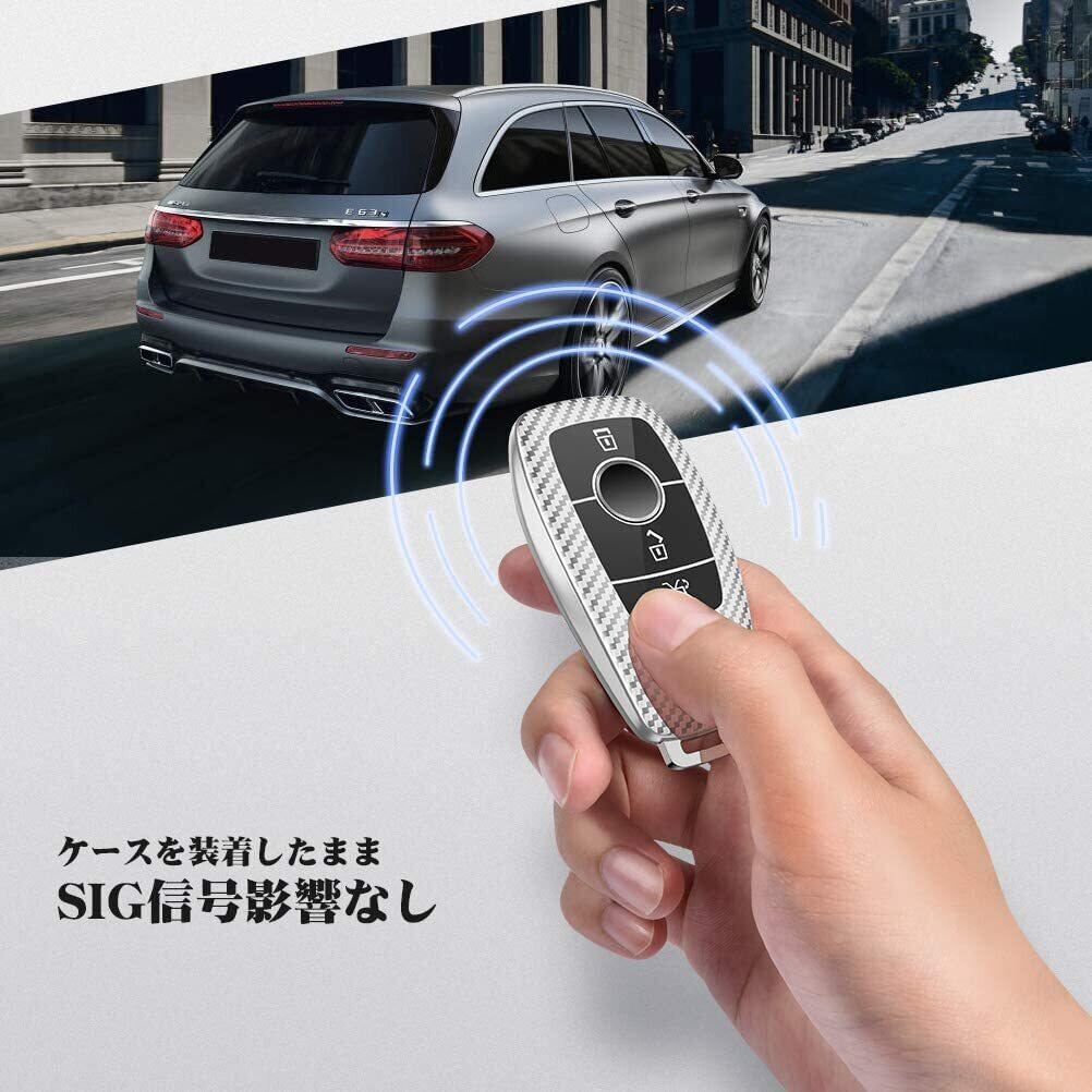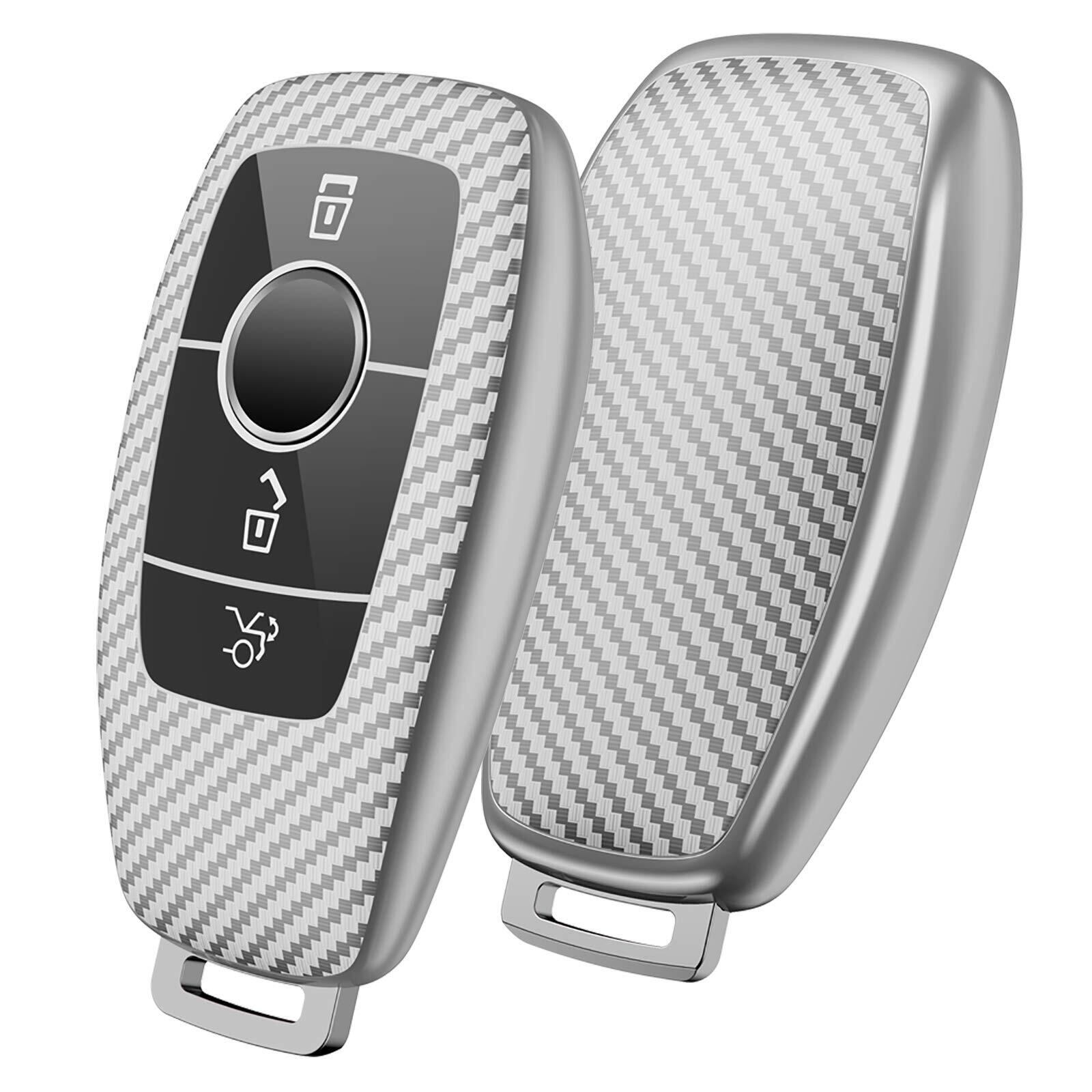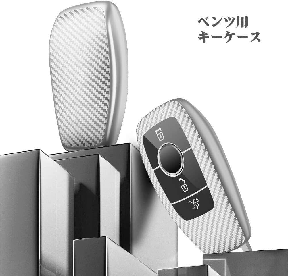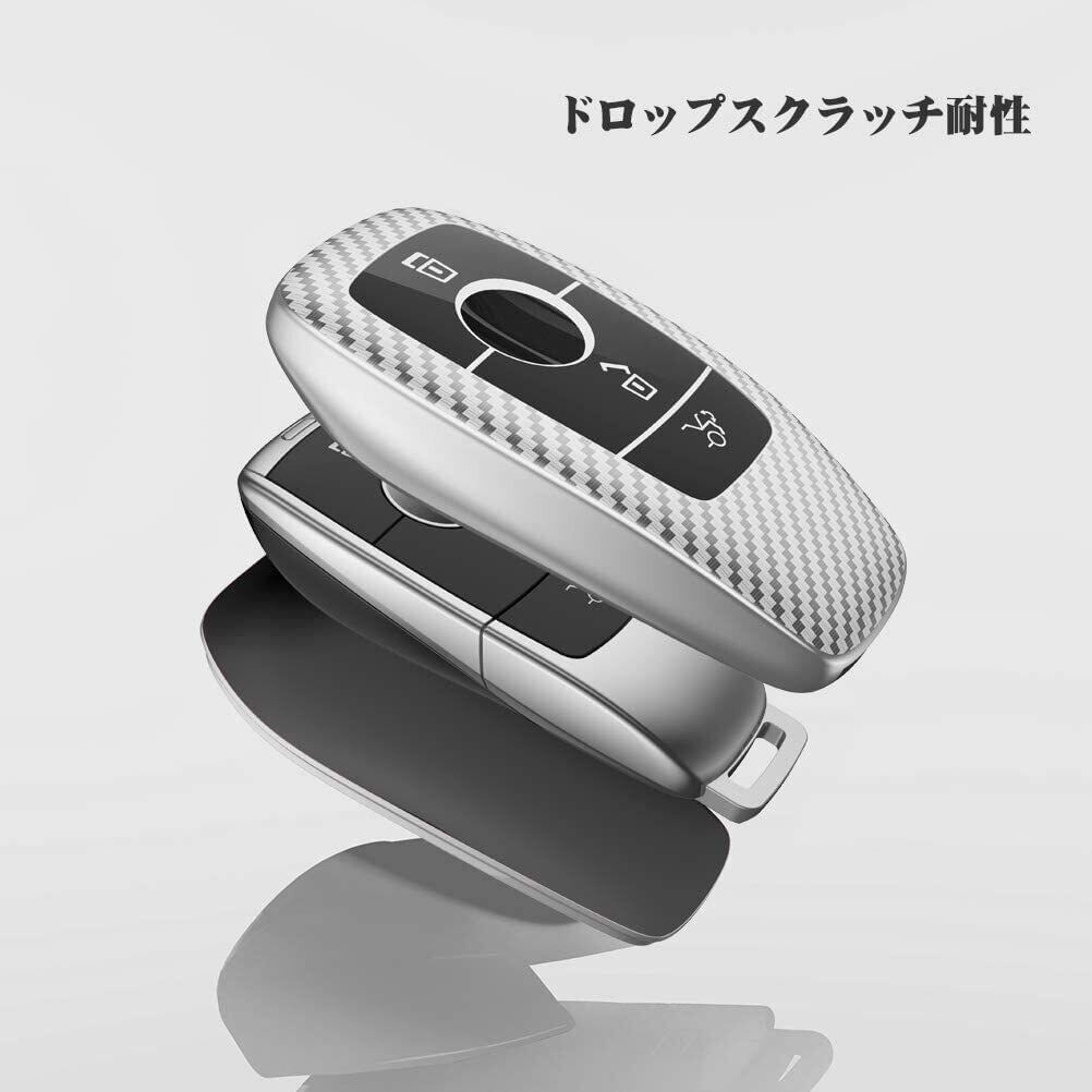 [OATSBASF] ベンツ キーケース ベンツキー カバー 炭素繊維 360度フルプロテクション 傷 防止 ベンツ アクセサリー 車 e系 キーケース (T-銀)