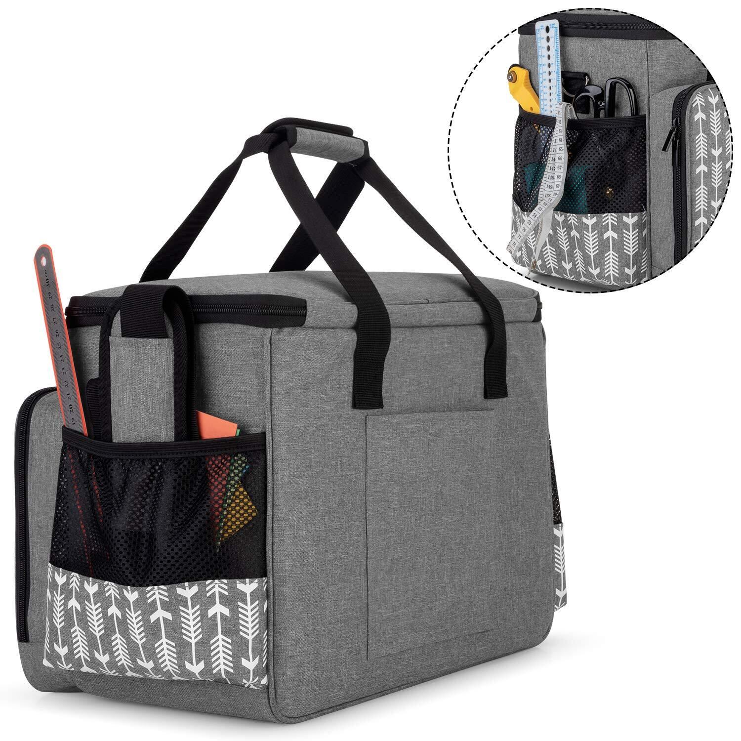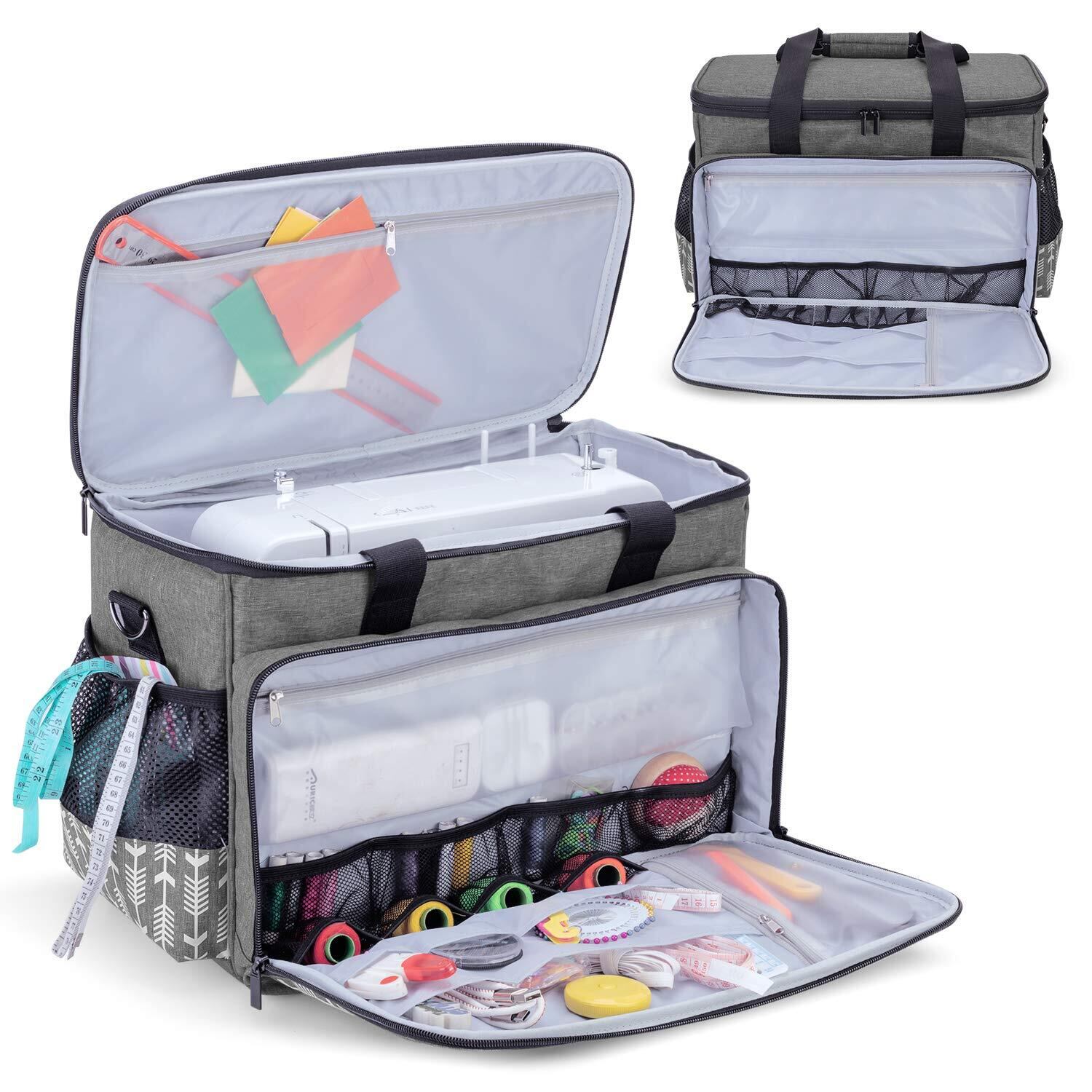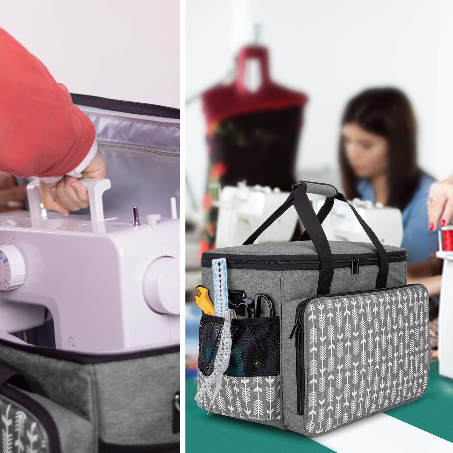 Yarwoミシンキャリングケース ミシン収納バッグ 硬い底板付き(矢印付きグレー)