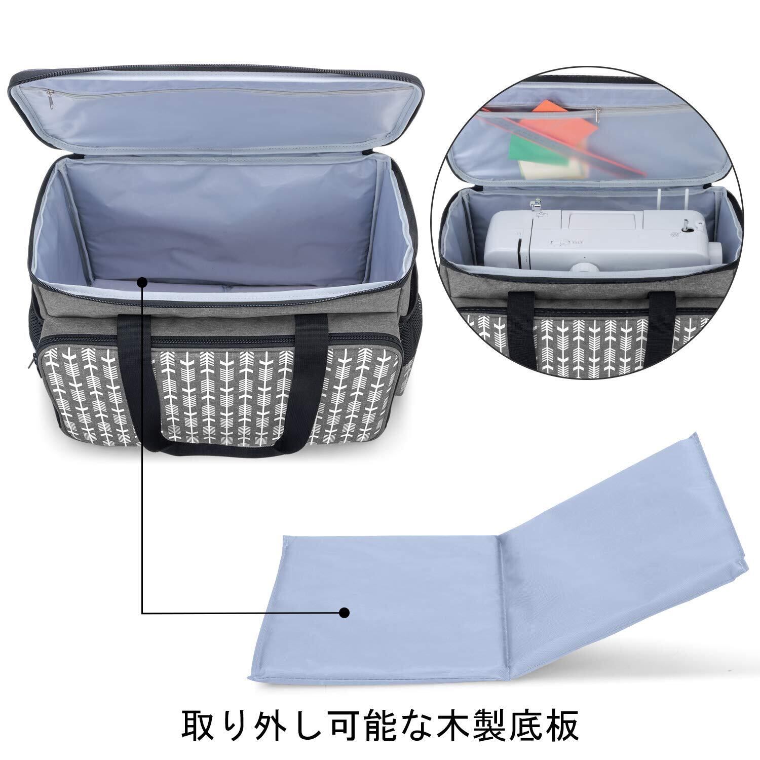 保護:耐久性のある外部ナイロン素材とクッション材を入れた内層により、大切なミシンを保護して、底部の取り外し可能な木製底板は、機械により優れた保護を提供します。