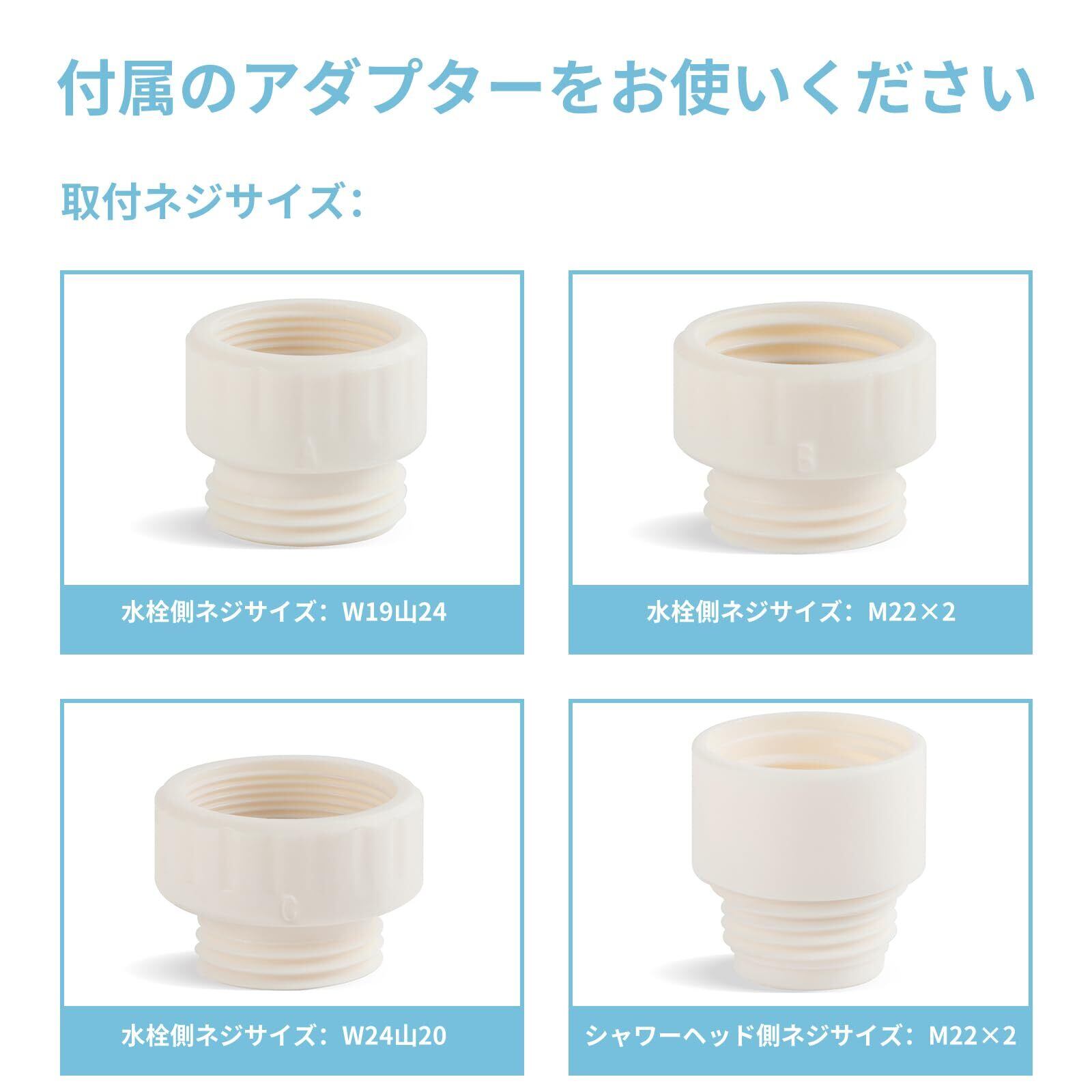 [アダプター付き] 付属品A:TOTO水栓(細ホース)と接続用。付属品C:TOTO大口径混合栓と接続用。付属品B:KVK水栓と接続用。付属品K:KVKシャワーヘッドと接続用。