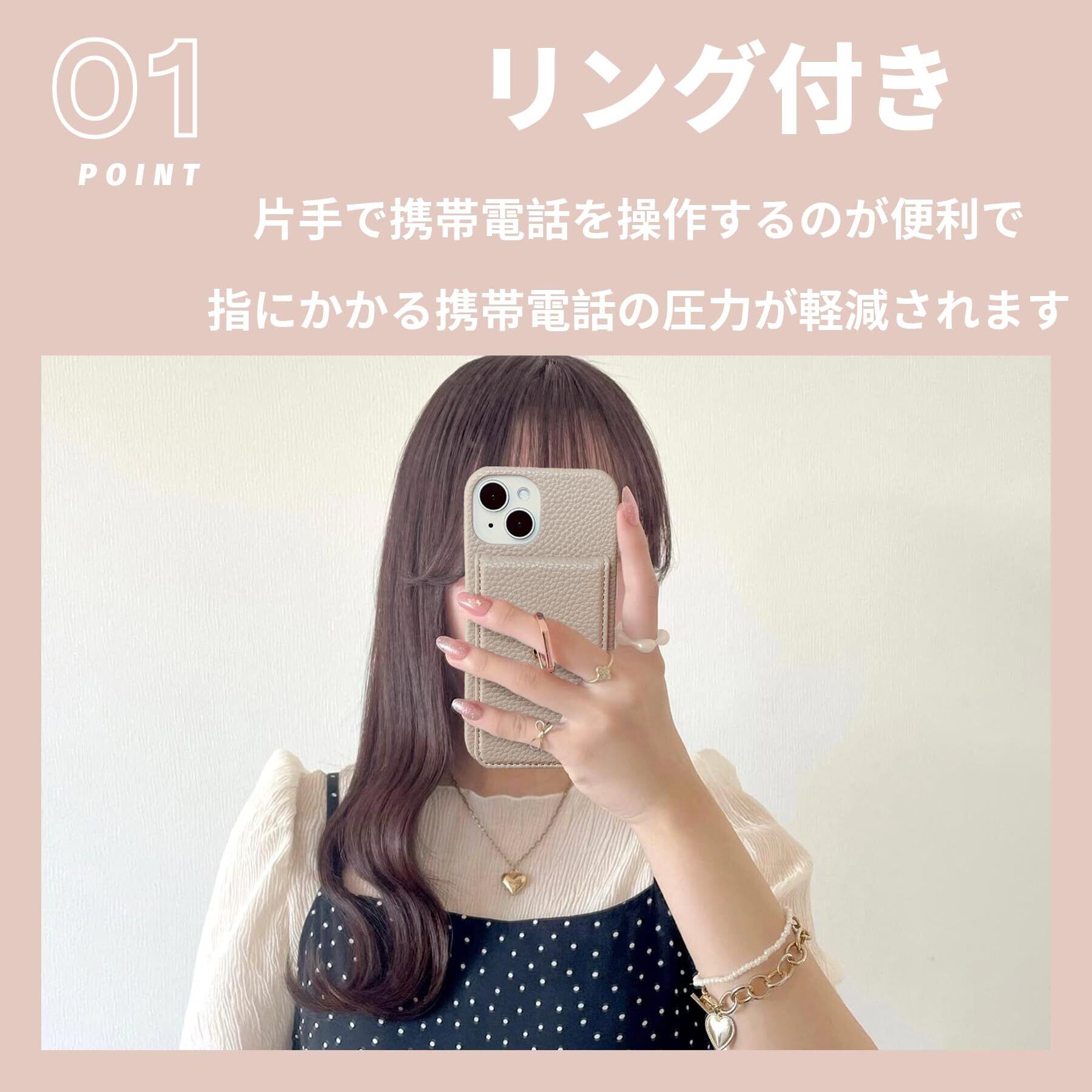 iPhone13ケース ショルダー付き カード収納 背面手帳型 リング付 スマホケース いphone13 ケース ショルダー ストラップ付き iPhone13 ケース ショルダー 落下防止 肩掛け 斜め掛 首掛け 可愛 かわいい おしゃれ スタンド機能 モカブラウン2