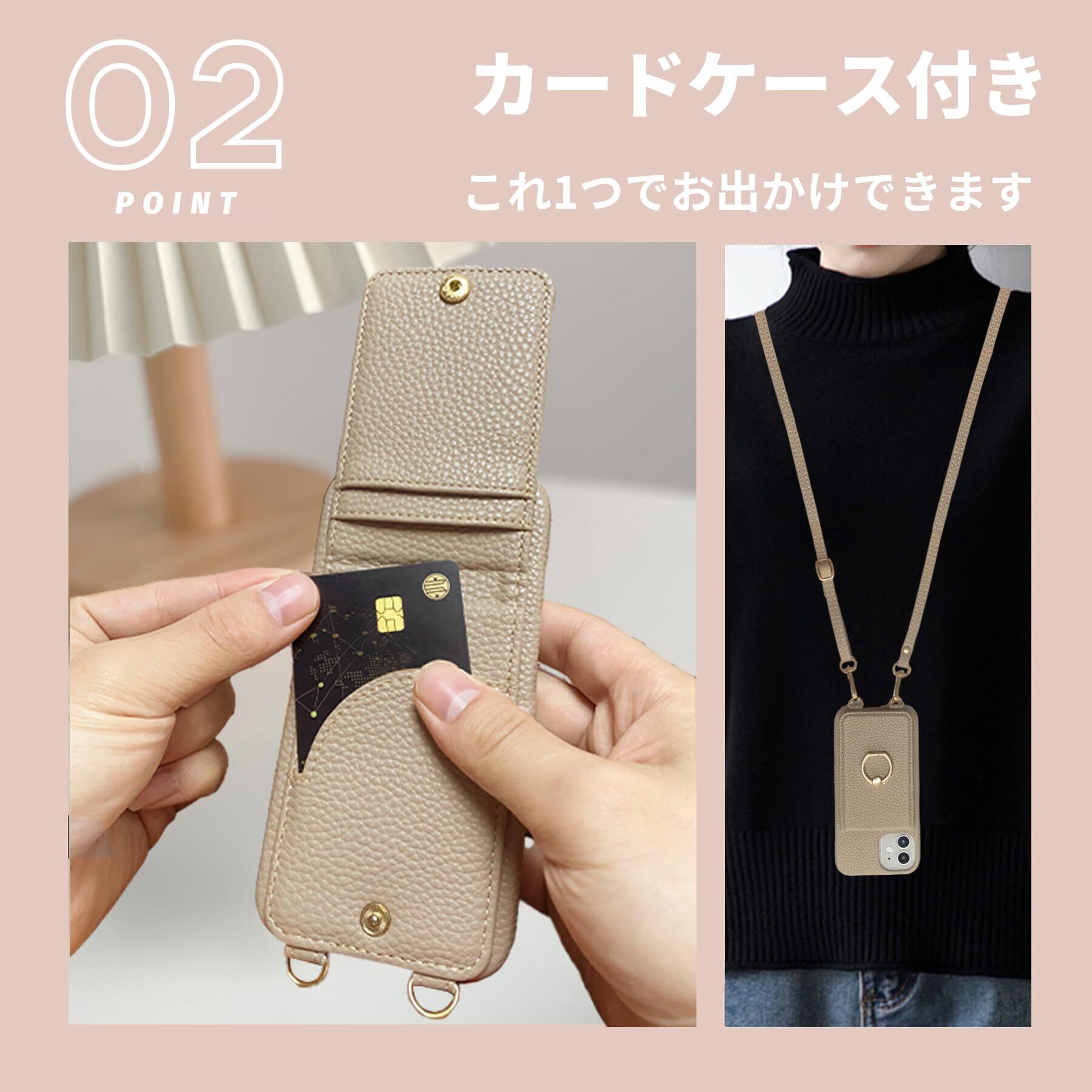 iPhone13ケース ショルダー付き カード収納 背面手帳型 リング付 スマホケース いphone13 ケース ショルダー ストラップ付き iPhone13 ケース ショルダー 落下防止 肩掛け 斜め掛 首掛け 可愛 かわいい おしゃれ スタンド機能 モカブラウン2 | BASE SHOP
