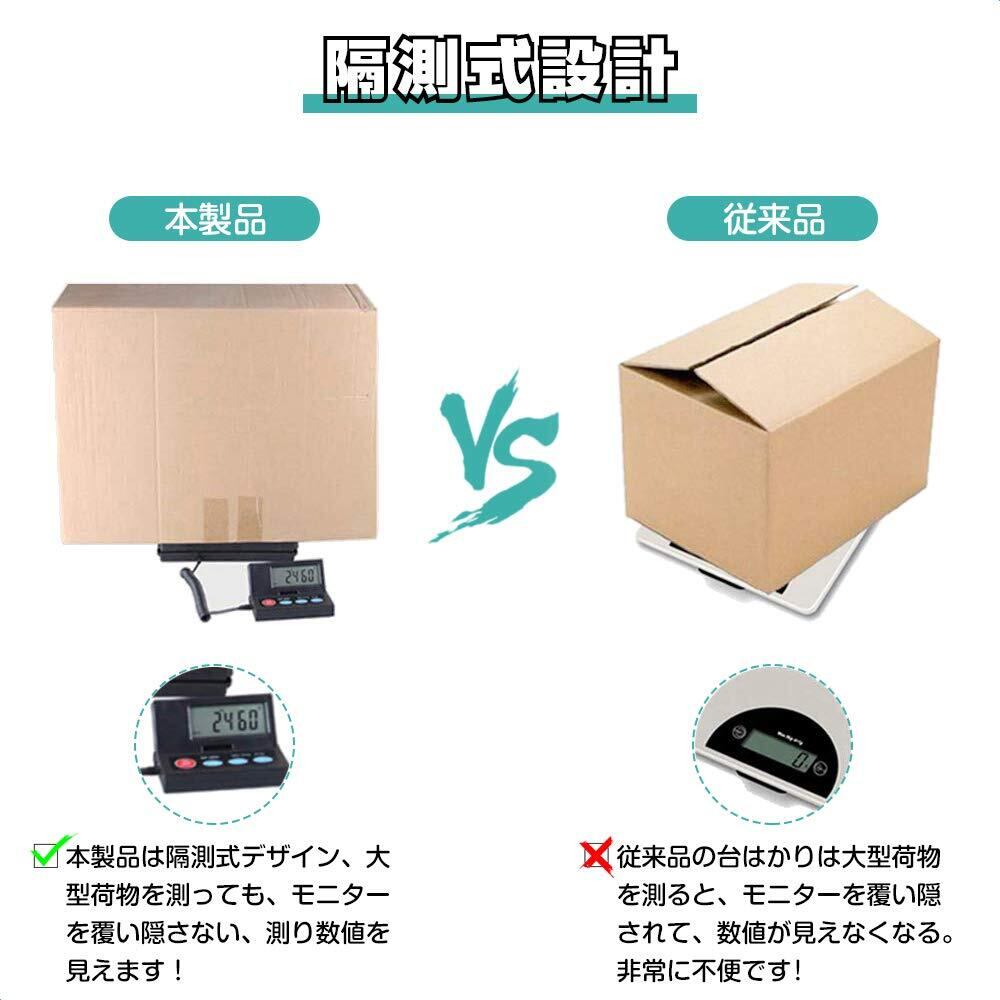 【隔測式デザイン】:計量皿と表示台を分離されてるデザインで、大型荷物を測っても、表示台を覆い隠されない、測り数値を見ることができます!