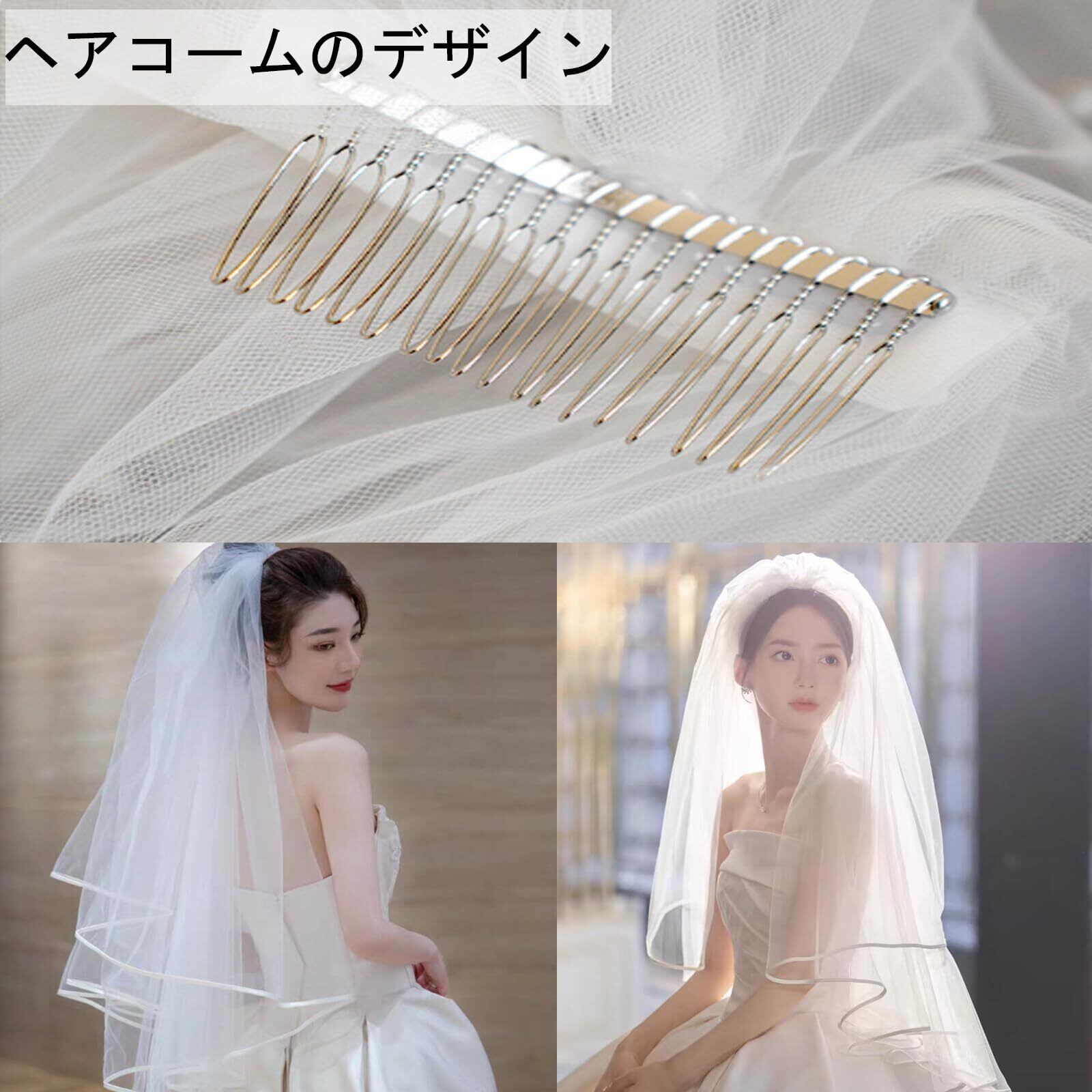 長さ:60-80cm 材質:チュール 。ウエディングベールは柔らかいチュール材質を採用して、しなやかで軽くて、シワつきにくくて通気性と柔軟性に優れます。付属の丈夫なコームでブライダルベールを脱落せずに簡単に固定できます。