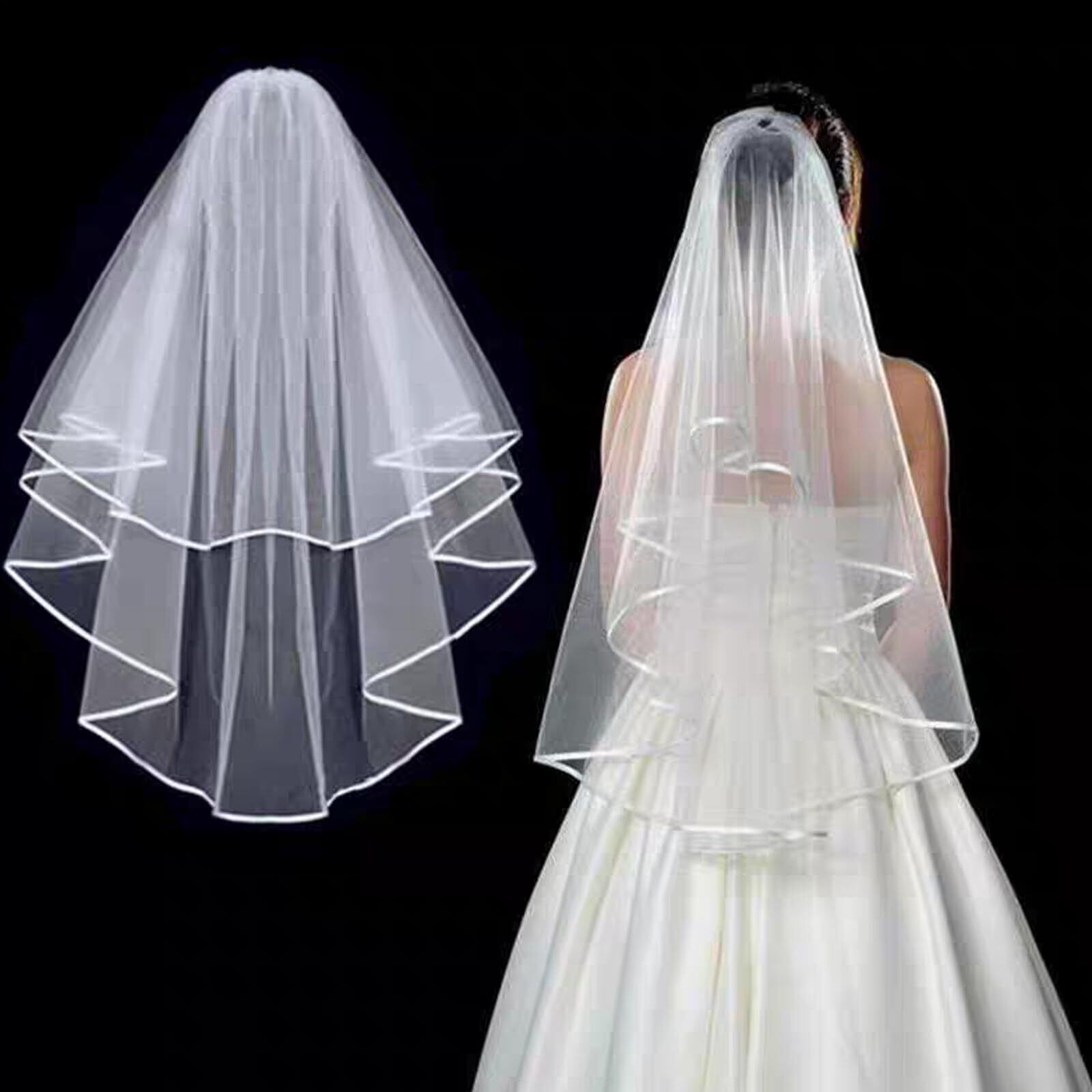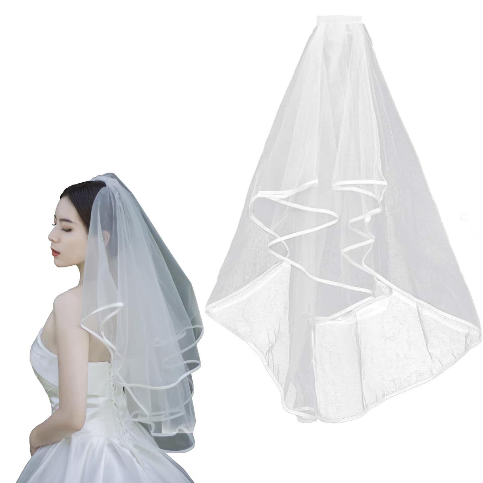 柔らかな白、控えめでエレガントな純粋なデザイン、シックな結婚式のベールはあなたの結婚式のための優れた装飾です。結婚式ベールは肌触り良くて透明感があり、頭や肩を簡単に覆い、花嫁の初々しく愛らしい姿が溢れます。コームが付いているので、簡単に付けます。