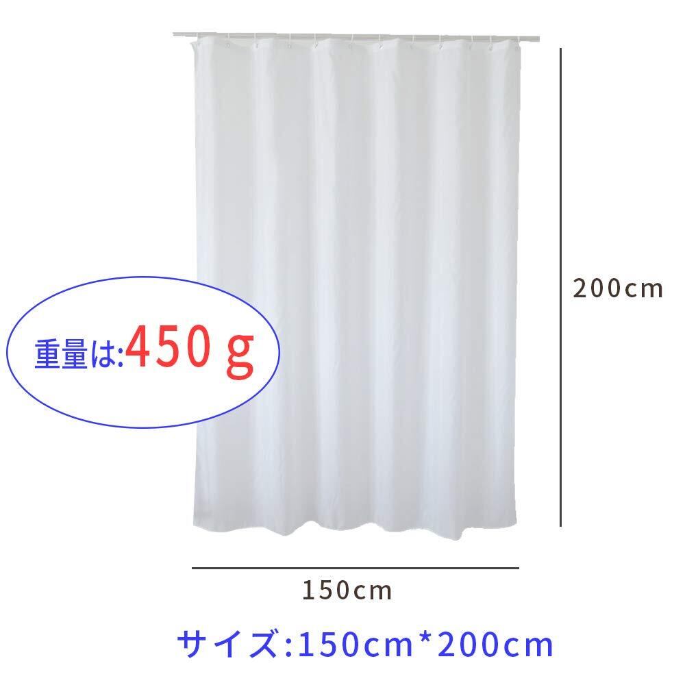 AooYo シャワーカーテン おしゃれ 150 x 200cm 防水 防カビ加工 風呂 浴室カーテン ポリエステル 北欧 ユニットバス 厚手 取り付け簡単 間仕切り バスルーム 1.5メートル 目隠し用 リング付属 プライバシー保護 シンプル ホワイト | BASE SHOP