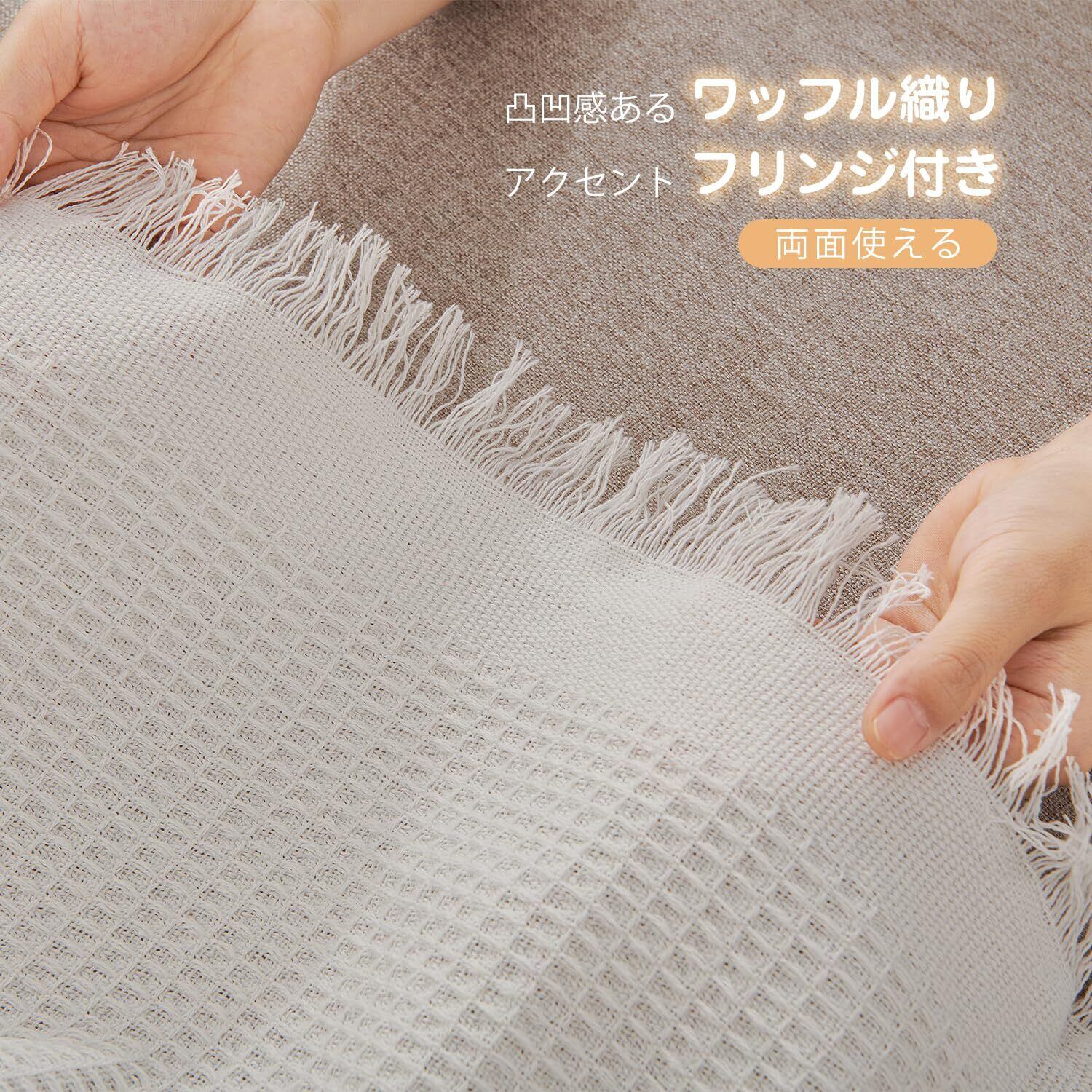 Atokazo ソファーカバー 北欧風 マルチカバー ソファカバー 肘付き 肘なし 多機能 ブランケット 綿 無地 リバーシブル フリンジ付き おしゃれ 保護カバー 防塵 キズ防止 汚れ防止 洗える 四季通用 ホワイト・ワッフル柄 90X180cm(1人掛け) | BASE SHOP