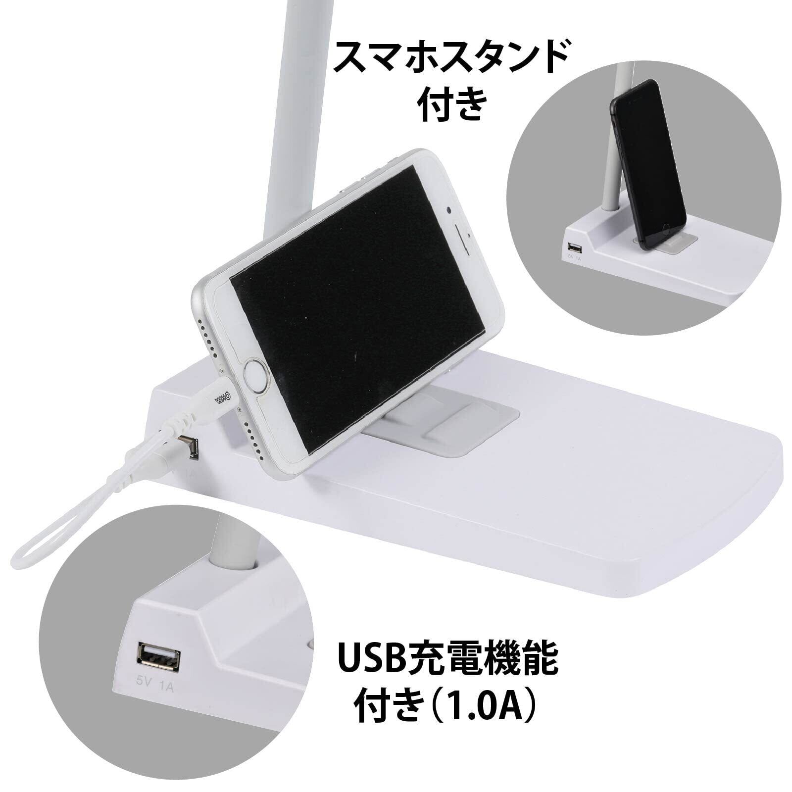 オーム電機 LEDデスクランプ ホワイト DS-LS36C-W 06-3839 デスクライト 学習スタンド USBポート付き OHM