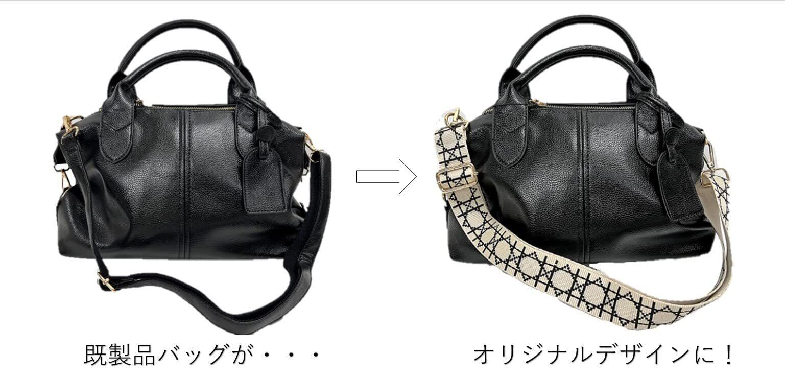 【エスティメイションのバッグ用付け替えショルダーストラップベルト!】バッグの付け替えショルダーストラップベルトです。お手持ちのバッグのベルトを付け替えるだけでオリジナルデザインのバッグに!既製品バッグに取り付けるだけで高級感UP、高見え、ブランド風に映える!