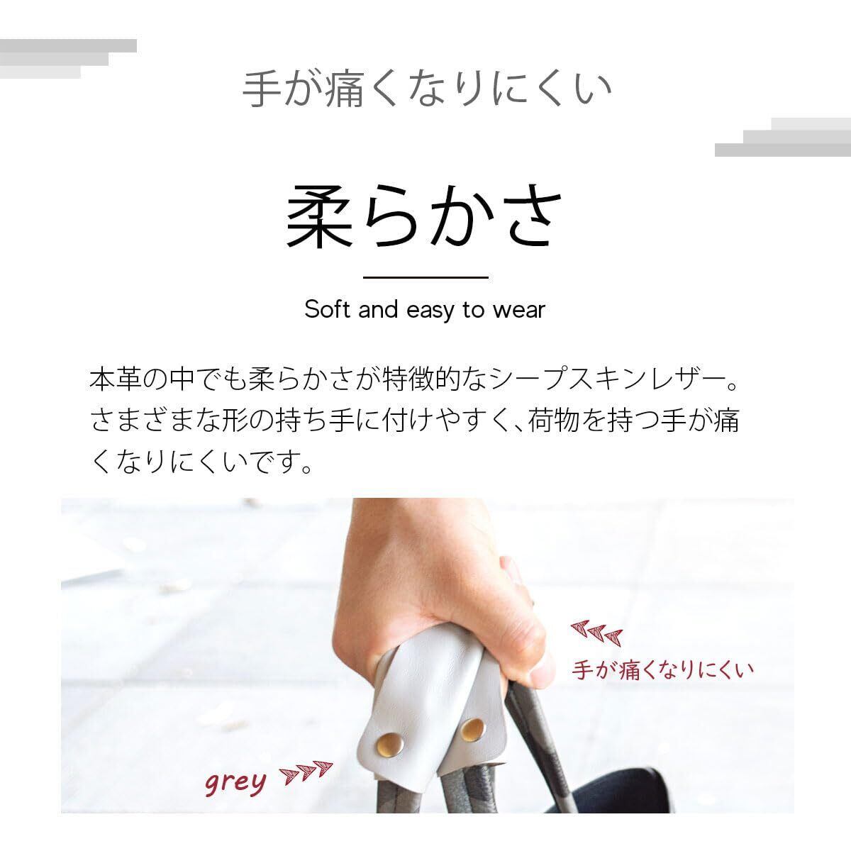 [RafiCaro] バッグ 持ち手カバー 本革 負担を軽減 ハンドルカバー 柔らかい グリップ かごバッグ トートバッグ とって レザー 羊革 フリーサイズ 長さ 13cm ワイドタイプ メンズ レディース 2個セット | BASE SHOP