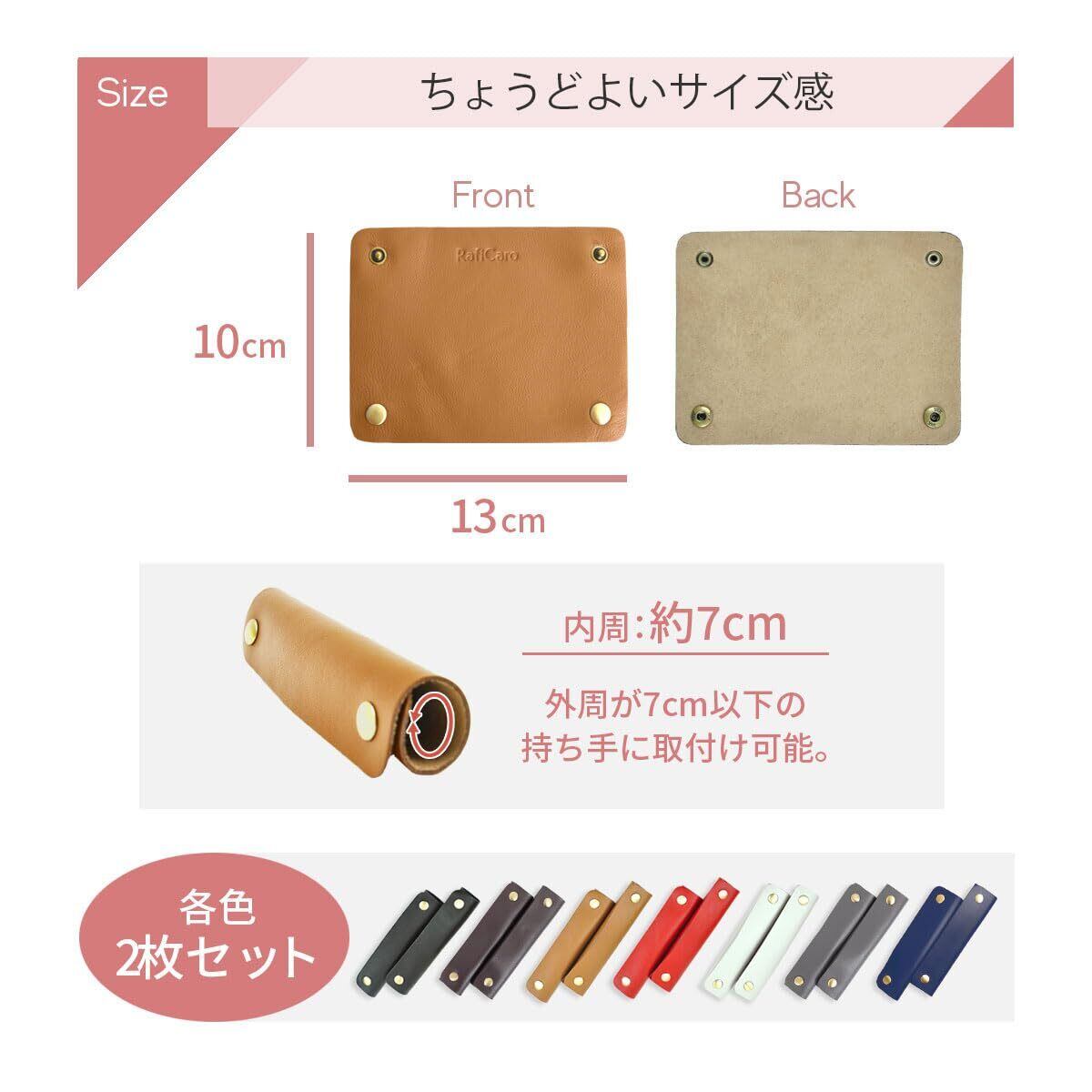 [RafiCaro] バッグ 持ち手カバー 本革 負担を軽減 ハンドルカバー 柔らかい グリップ かごバッグ トートバッグ とって レザー 羊革 フリーサイズ 長さ 13cm ワイドタイプ メンズ レディース 2個セット