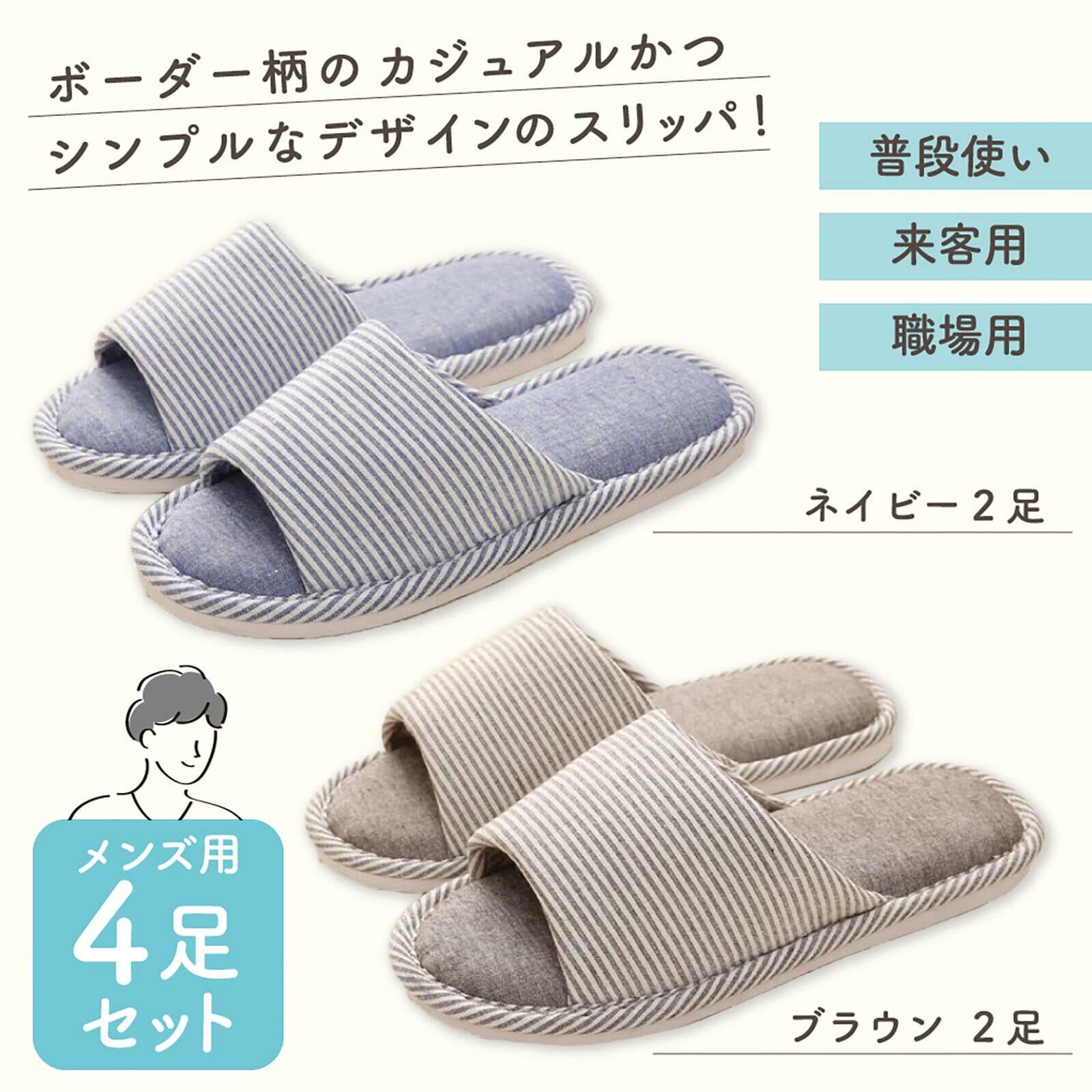 ボーダー柄のカジュアルかつシンプルなデザインのスリッパのメンズサイズのセット。