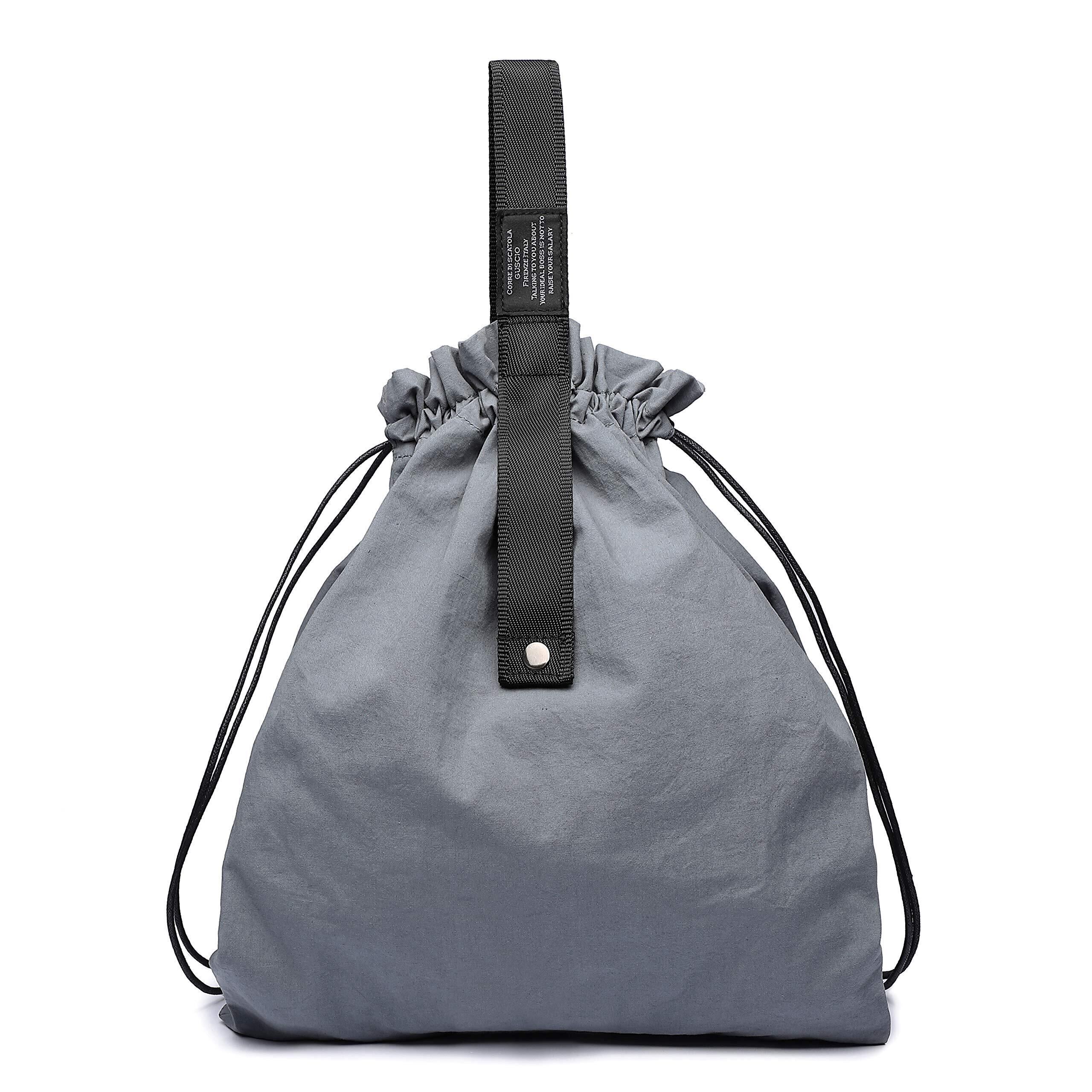 【グッシオ】巾着型 エコバッグ コンパクト収納 コンビニサイズ 綿麻素材 カジュアルコーデ 手提げ×肩掛け 2WAY仕様 折りたたみ 携帯便利 おしゃれ125012