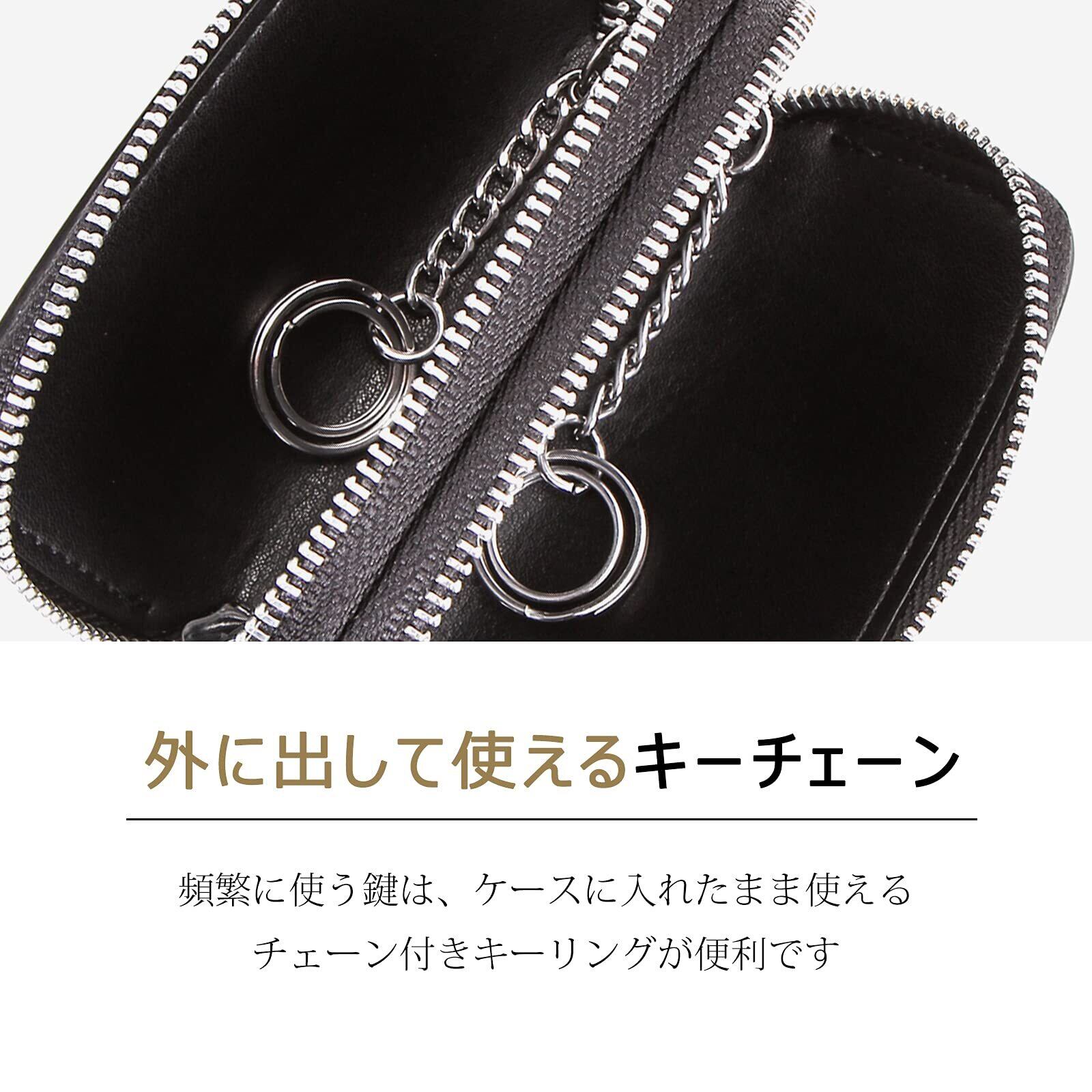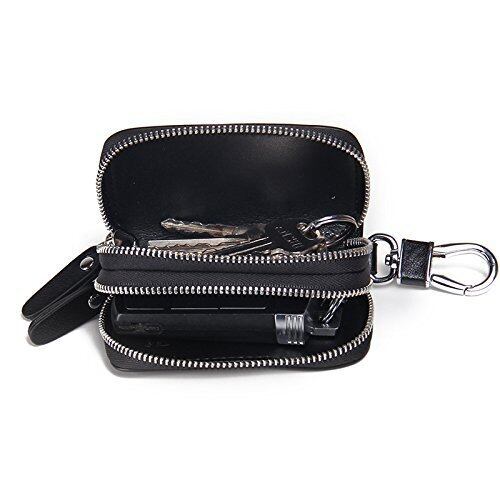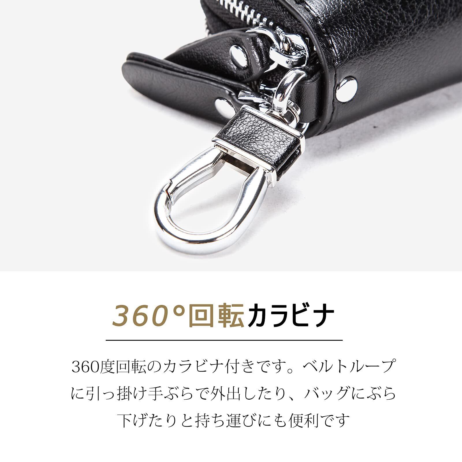 [HIRAM] キーケース メンズ 本革 スマートキーケース ダブルファスナー カラビナ付き DIY無料
