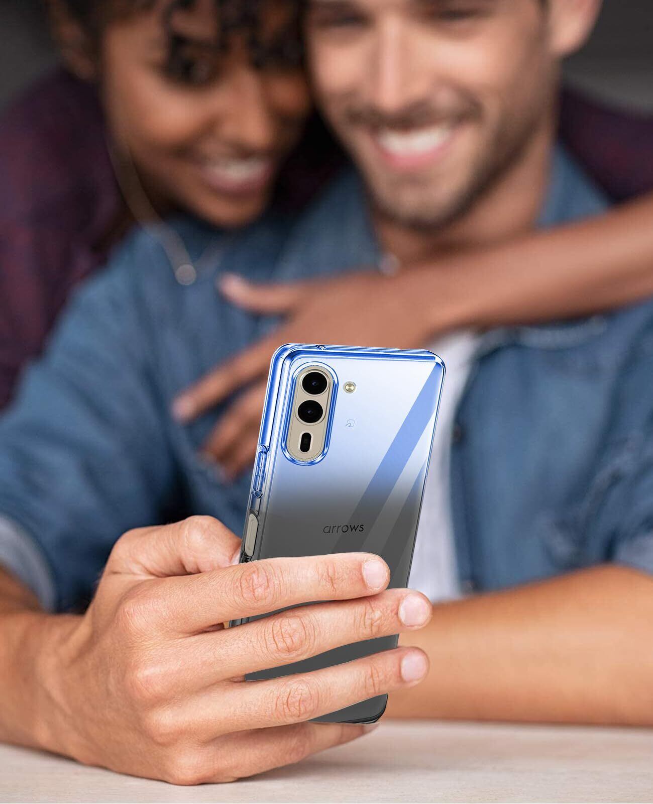 Arrows We2 Plus F-51E ケース クリア 薄型 TPU 耐衝撃 グラデーション色 ケース アローズ We2 Plus カバー 黄ばみ防止 擦り傷防止 軽量 人気 スマホケース カメラ保護 ワイヤレス充電対応 ブルーブラック | BASE SHOP