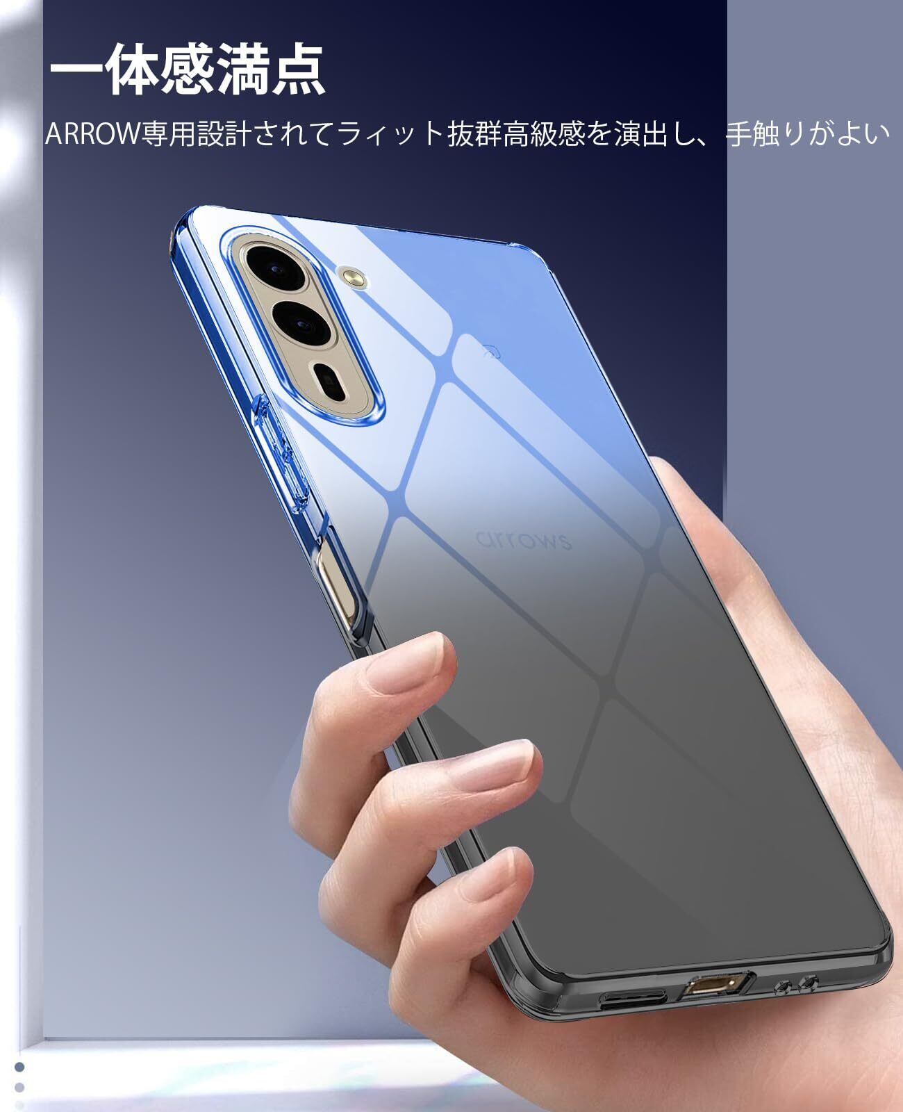 Arrows We2 Plus F-51E ケース クリア 薄型 TPU 耐衝撃 グラデーション色 ケース アローズ We2 Plus カバー 黄ばみ防止 擦り傷防止 軽量 人気 スマホケース カメラ保護 ワイヤレス充電対応 ブルーブラック