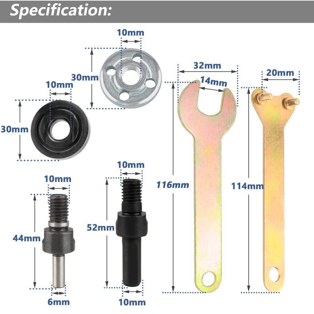 Dovhmoh フランジナット部品セット付きドリルアングルグラインダーアダプター、3セット交換用グラインダーフランジナットおよびレンチ変換ツール