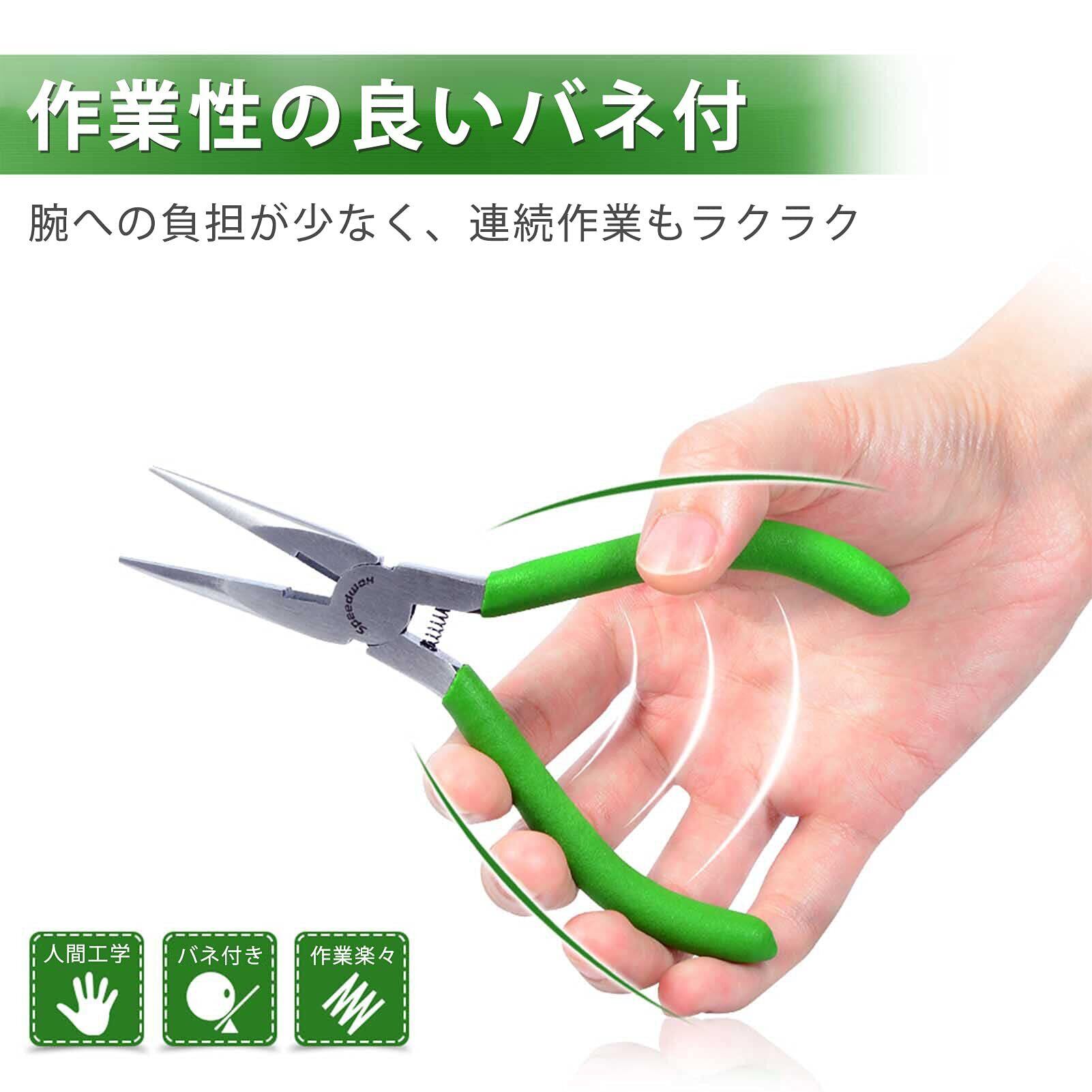 【用途】手で持ちにくい小さな部品を掴んだり、針金やTピン、9ピンの先を円状に曲げたり、丸カンやCカンを開いたり、カシメや金具の取り付けたり、軟鉄線や銅線を切ったり、ファスナー加工することができます。金属パーツの組立やビーズ、アクセサリー作り、ワイヤークラフト、アートなどに最適です。