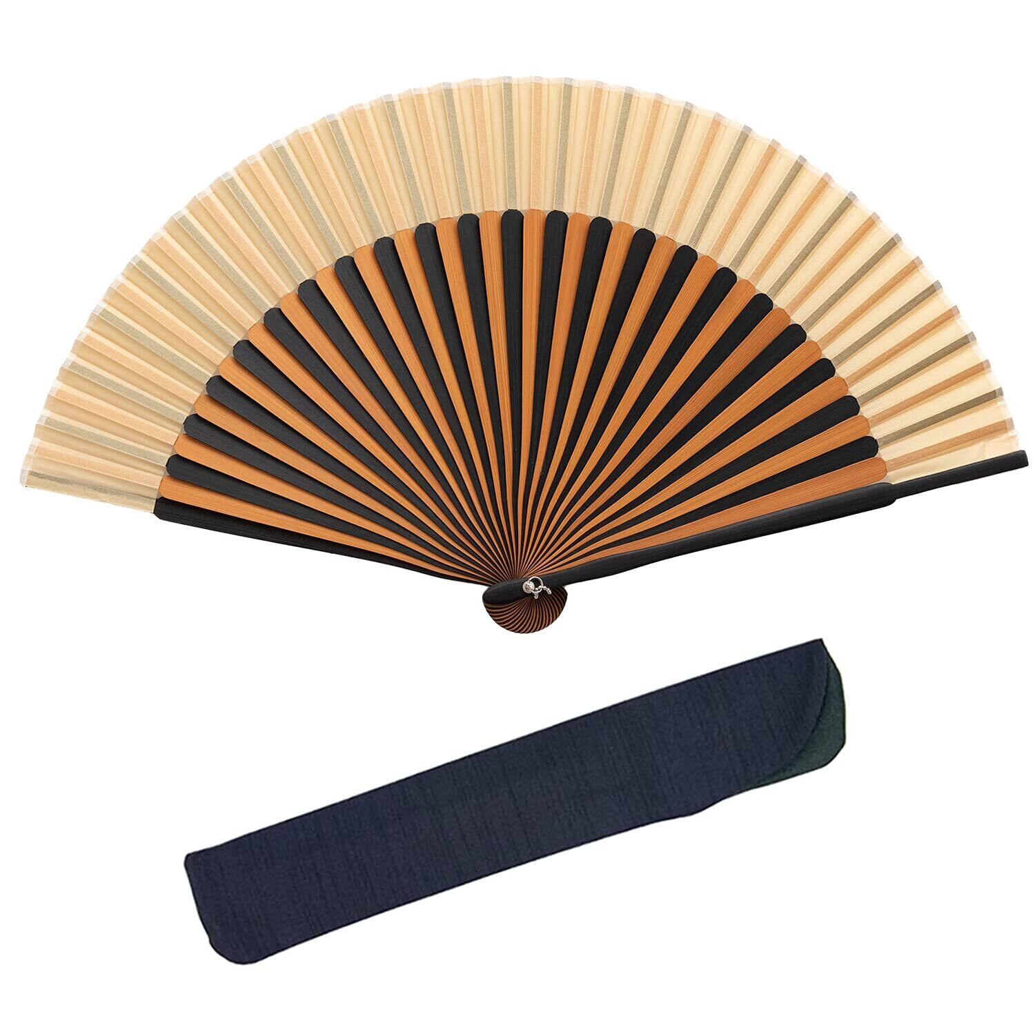 [KYOETSU] [キョウエツ] 扇子 正絹 無地 2色竹黒 2点セット(扇子、扇子袋) メンズ