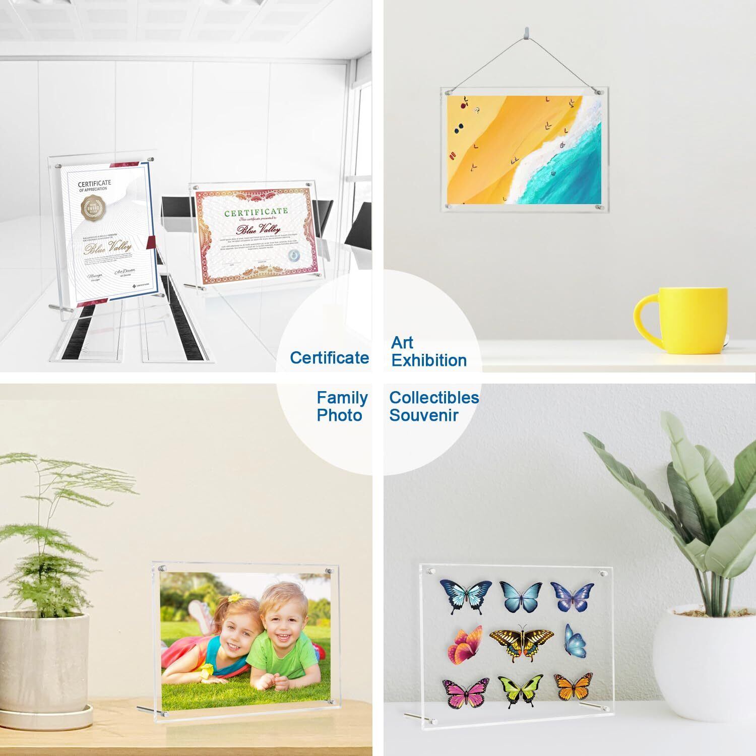BlueValley B5額縁、アクリルスタンド、アクリルフォトフレーム、写真立て、両面透明ポスターフレーム、スタンドタイプ写真フレーム、卓上展示ピクチャー・絵画・賞状・表彰状用 横縦置き (収納サイズ: 176x250mm) | BASE SHOP