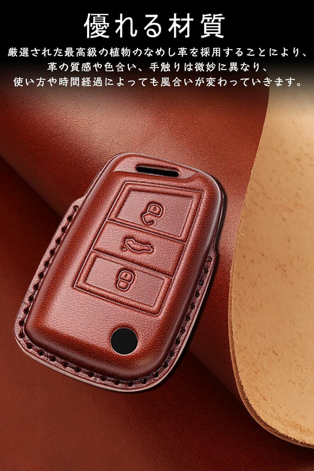 高級素材:このフォルクスワーゲン キーケースは上質で手触りの良い本革素材を使用したスマートキーケースです。レザー素材に太いステッチを施し、耐久性が良く、クールでおしゃれなキーケースとなっております。豪華さを演出してくれます。本キーケースを取り付けるだけで愛車のスマートキーは高級車のキーに様変わりします。