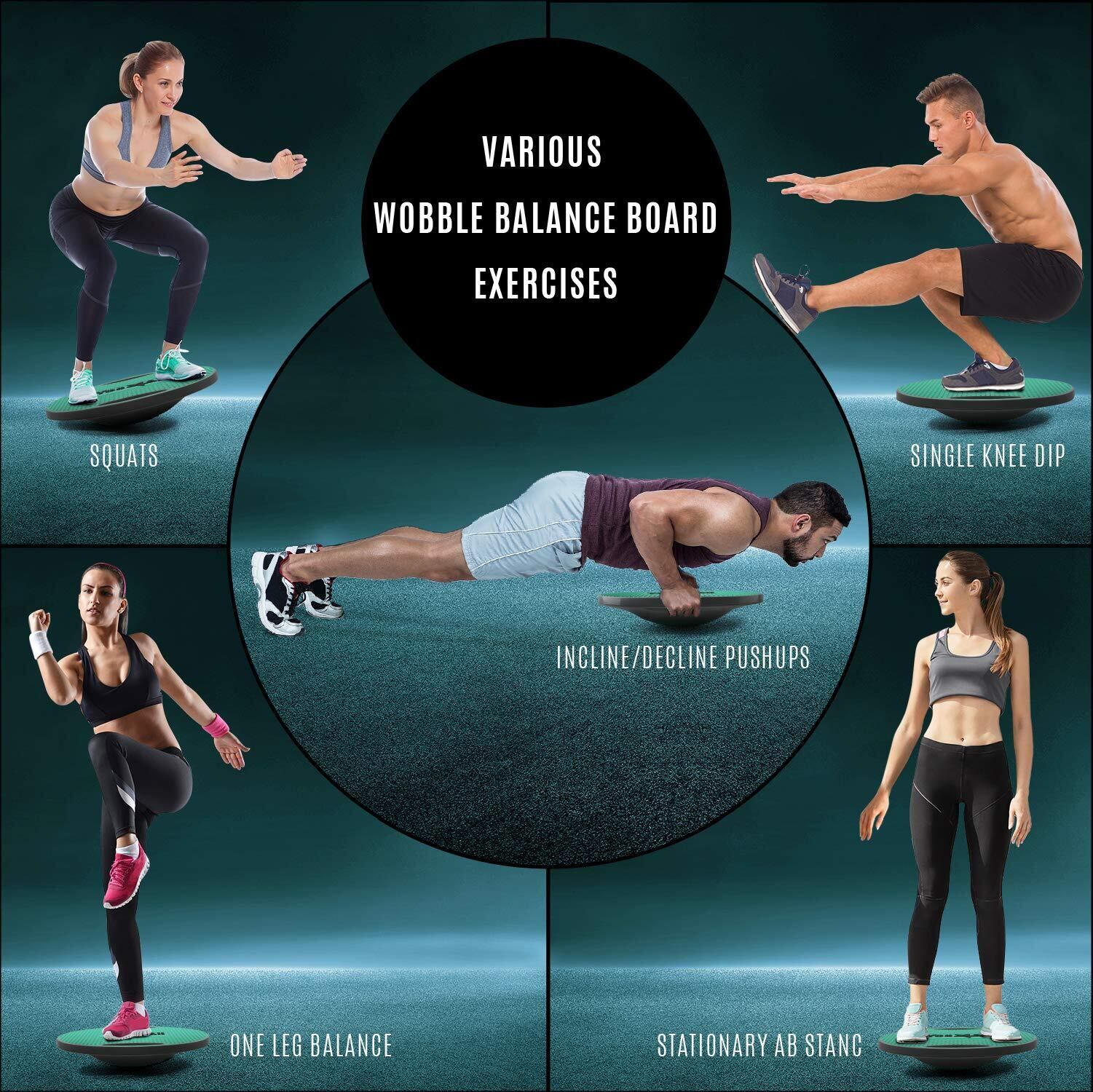 「用途」このバランスボードの上で、ランジ、スクワット、インクラインプッシュアップ、デクラインプッシュアップ、ストレートアームプランク、カーフレイズなどのエクササイズを行うことができ、全身のトレーニングに役立ちます。