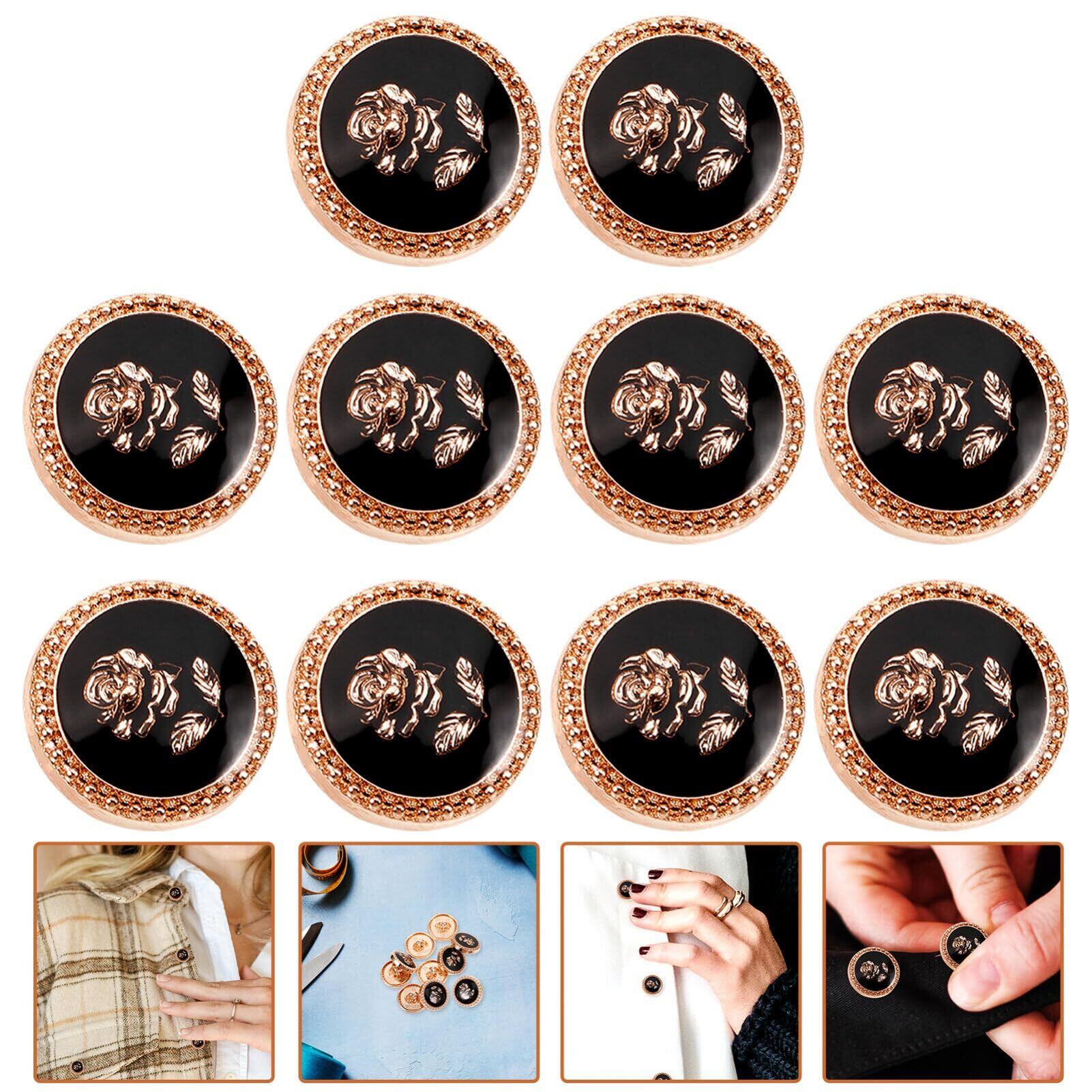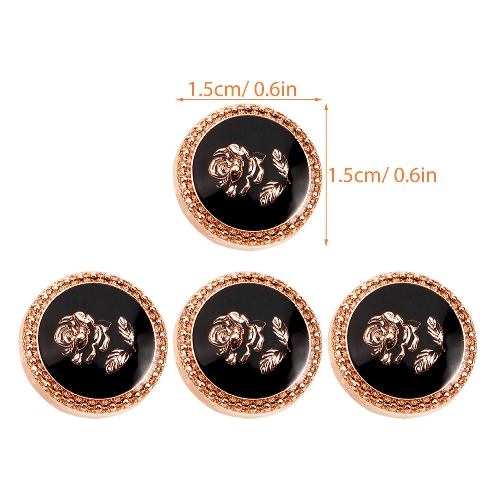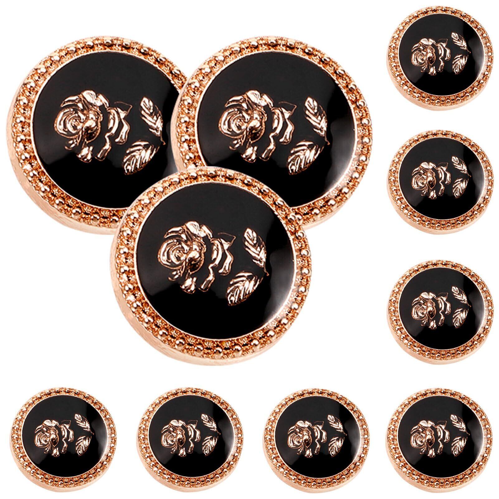 CALLARON ボタン 黒 15mm 袖 10点セット ローズ 飾りボタン 洋服 コート用 交換 修理 DIY用品 手作り アクセサリーパーツ 工芸品 チャーム