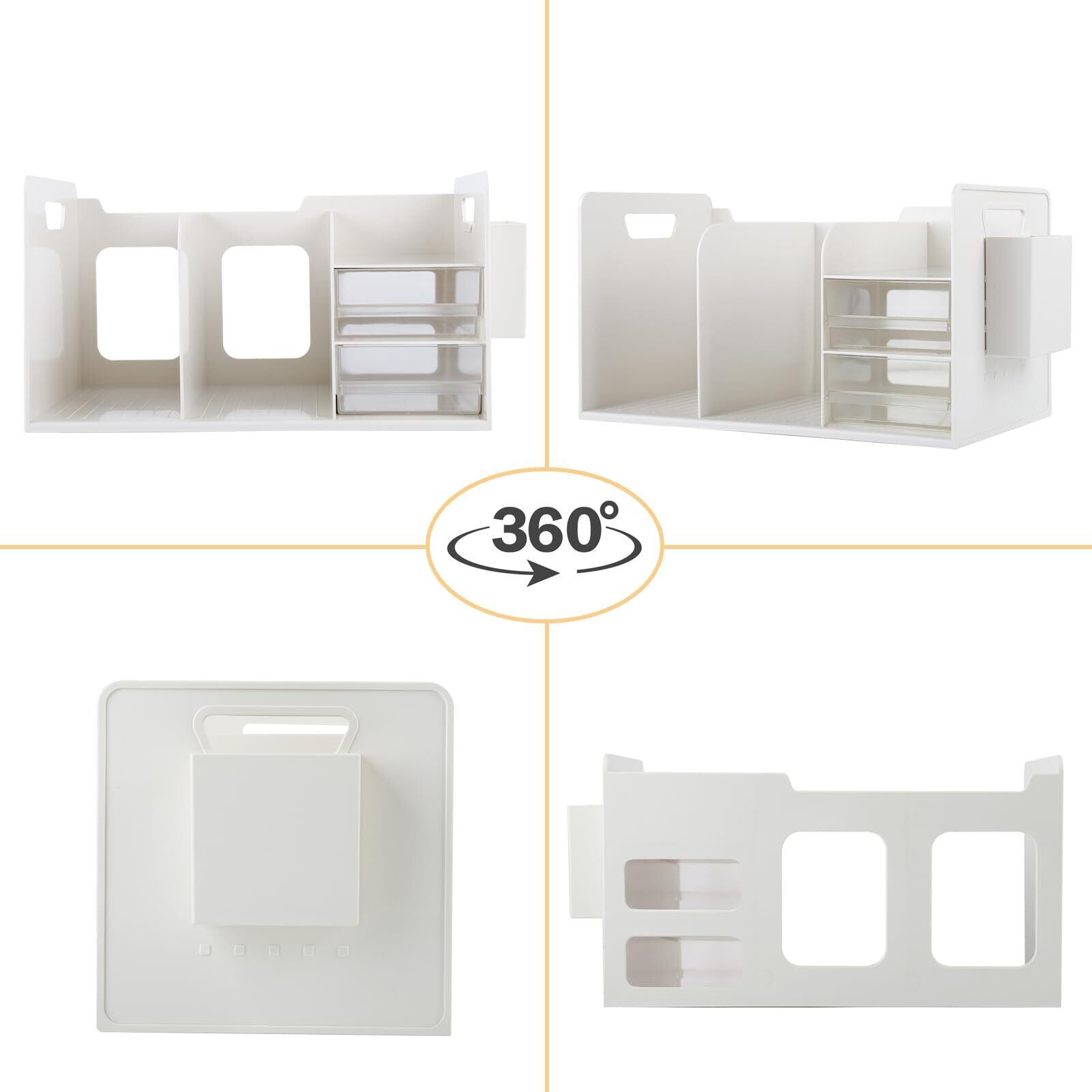 【幅広い用途】デスクトップスペースを最大限に活用し、デスクトップを整頓することができます。文房具、書籍、雑誌、辞書、会議資料、メモ帳、電卓、充電器、化粧品、DVDなどデスク用品を収納できます。家庭、オフィス、学校、小さな寝室、本棚、ドレッサー、デスクトップ、ワークベンチに適しています。