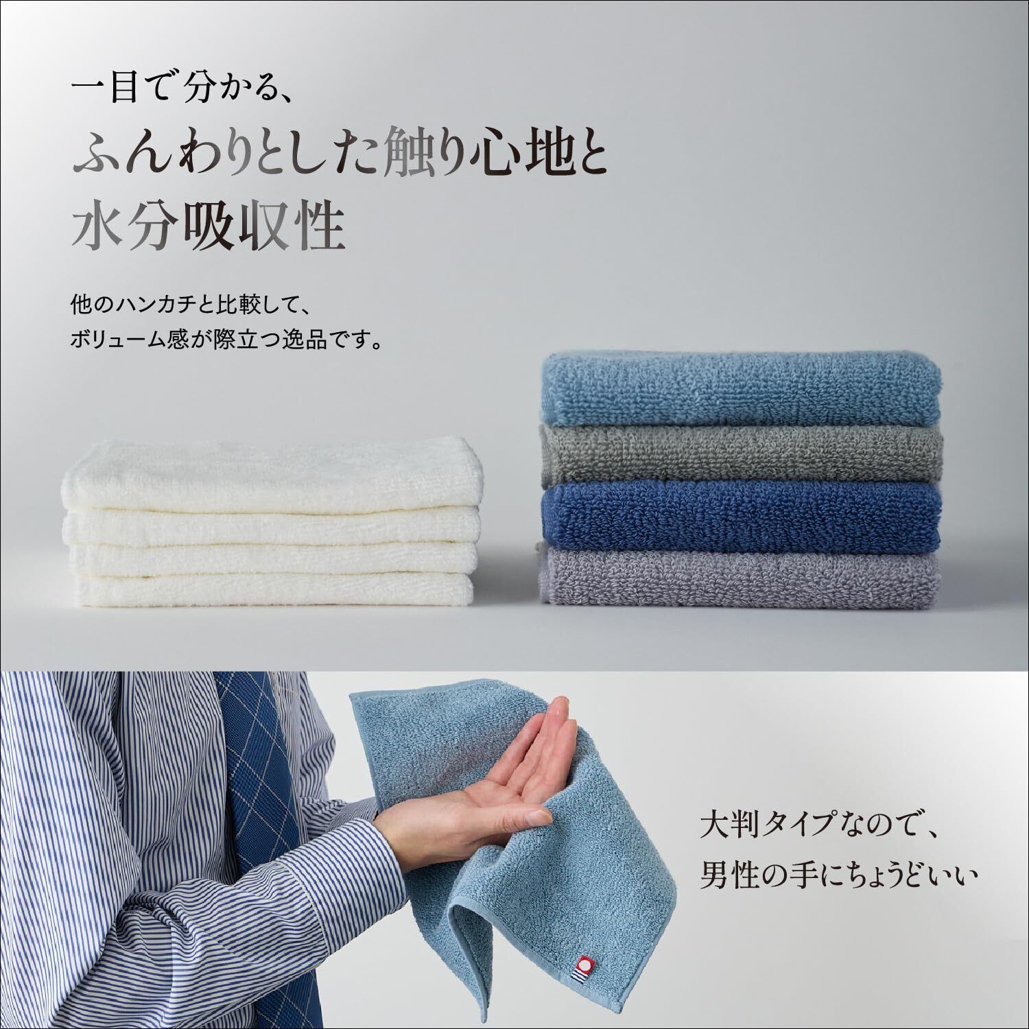 【ふんわりとした厚みと高い吸水力】高品質な素材を使い、丁寧に作られたタオルハンカチは、ふんわりと厚みがあり、吸水性も抜群。使うたびに心地よさを実感できます。