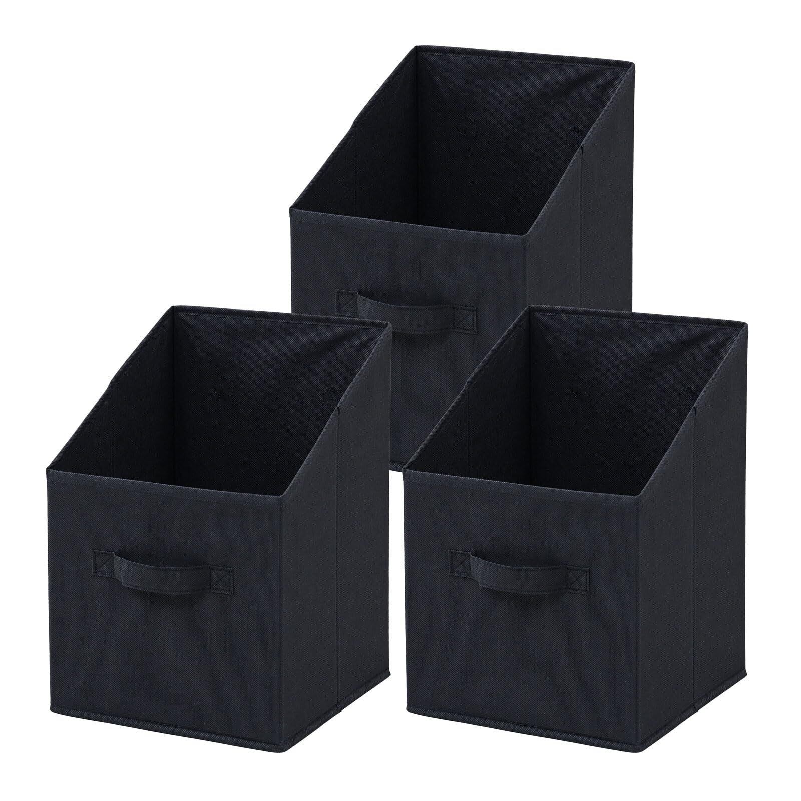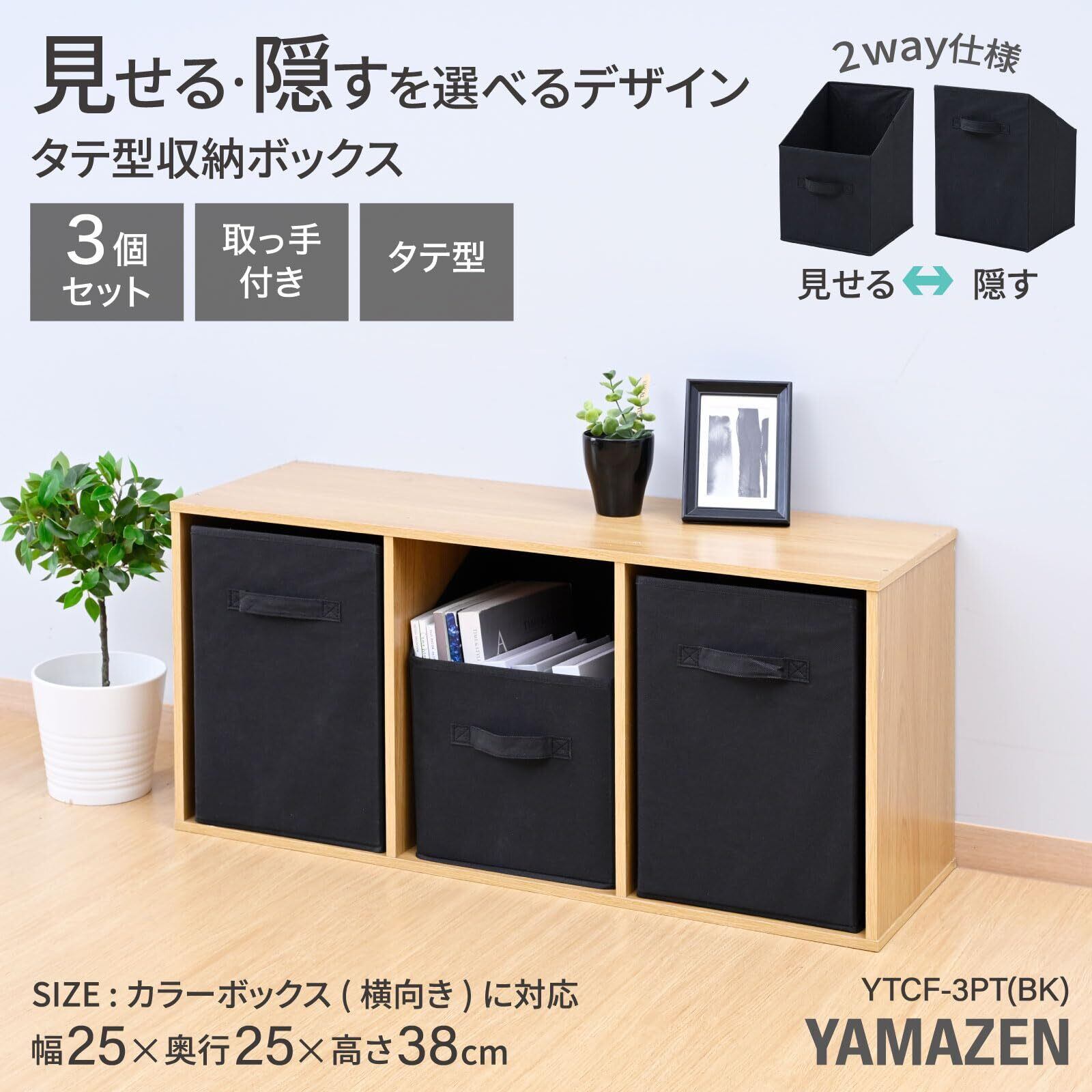 山善(YAMAZEN) 収納ボックス 縦型 取手付き カラーボックス対応【3個組】 衣類 小物 収納 折りたたみ可能 幅25×奥行25×高さ38cm 完成品 ブラック YTCF-3PT(BK) | BASE SHOP