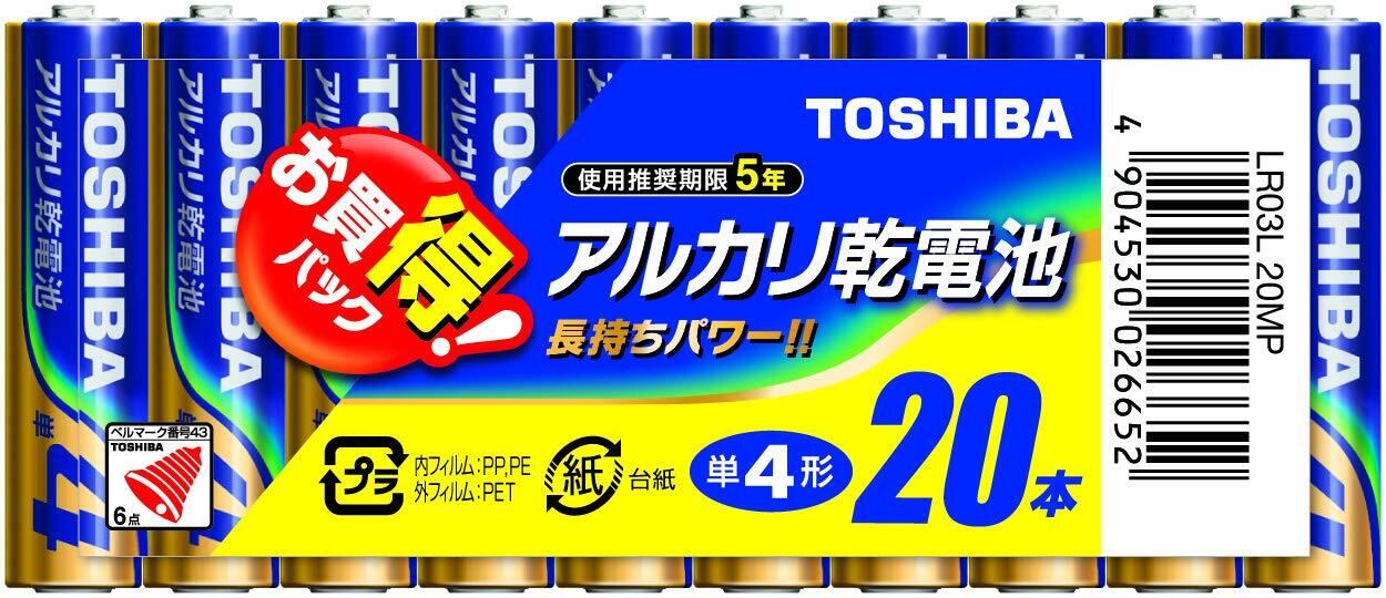 東芝(TOSHIBA) アルカリ乾電池 単4形1パック20本入り LR03L 20MP