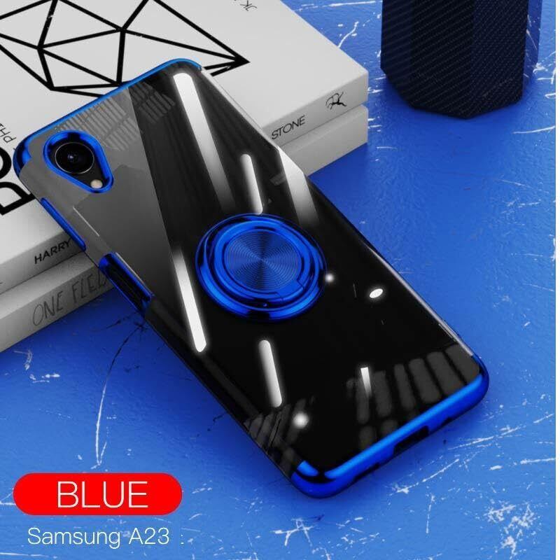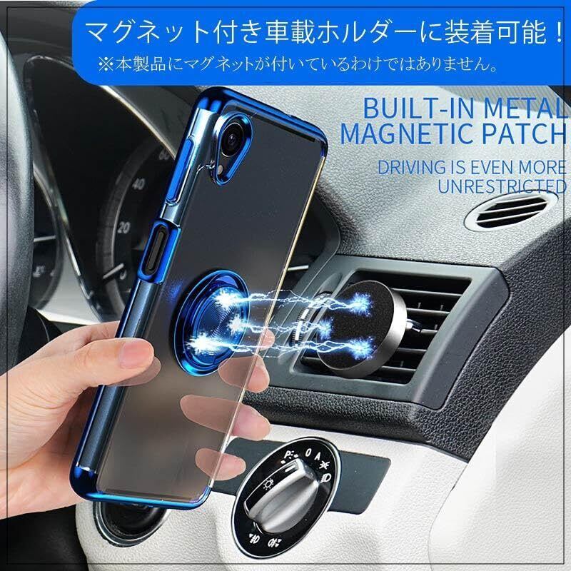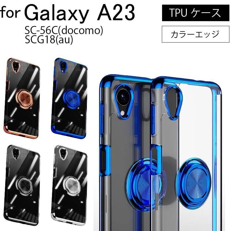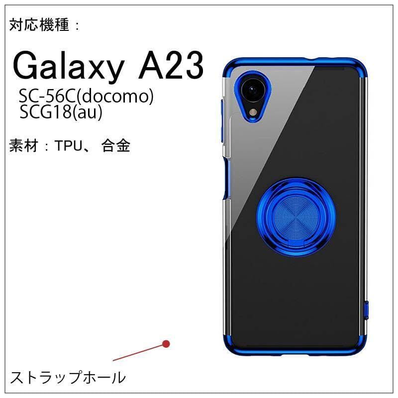 Galaxy A23 5G SCG18 SC-56C ケース ソフトケース リング付 車載ホルダー対応 360°回転 スタンド機能 TPU クリア 耐衝撃 衝撃吸収 ケース カバー 保護ケース サイドメッキ加工 クリアケース スマホケース スマホカバー ブルー