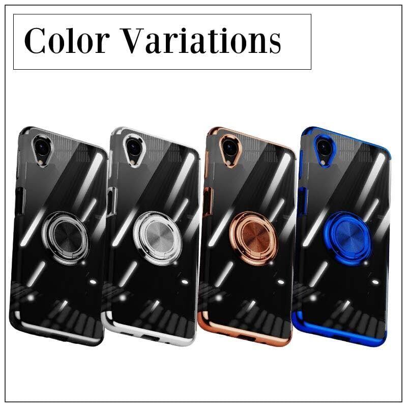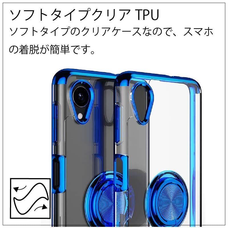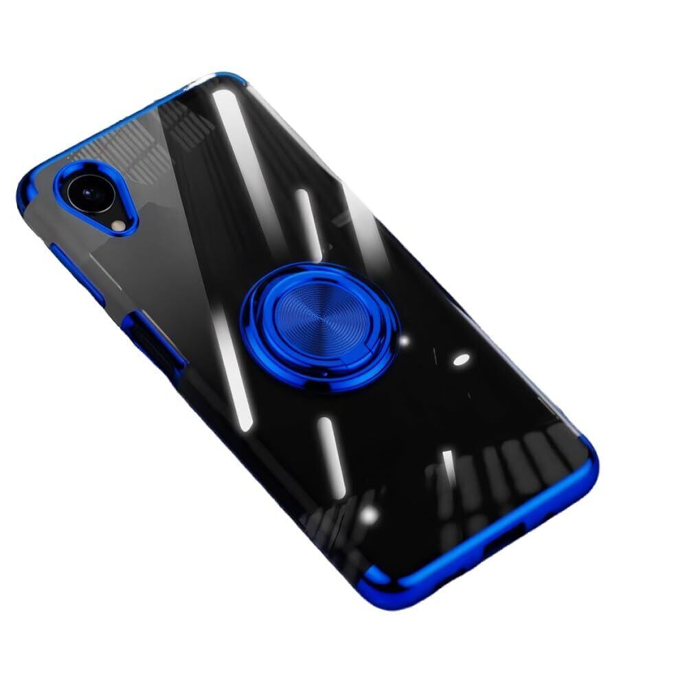 Galaxy A23 5G SCG18 SC-56C ケース ソフトケース リング付 車載ホルダー対応 360°回転 スタンド機能 TPU クリア 耐衝撃 衝撃吸収 ケース カバー 保護ケース サイドメッキ加工 クリアケース スマホケース スマホカバー ブルー | BASE SHOP