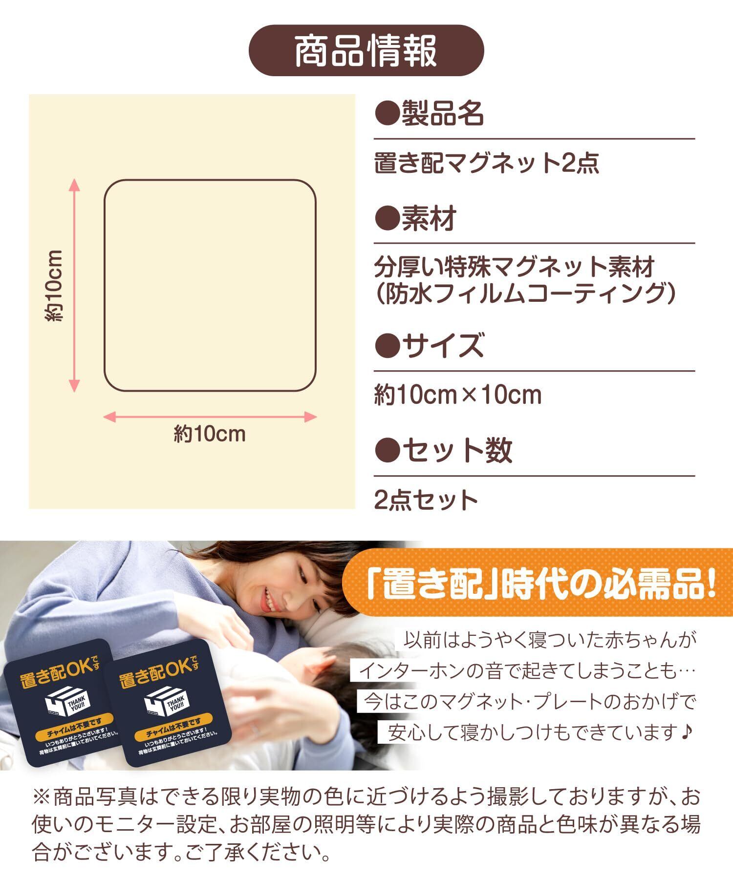 【置き配マグネットと置き配プレートの2点セット】ポストにマグネット、玄関ドアにプレートをそれぞれ設置できるので、配達員さんの見逃しを防げます。