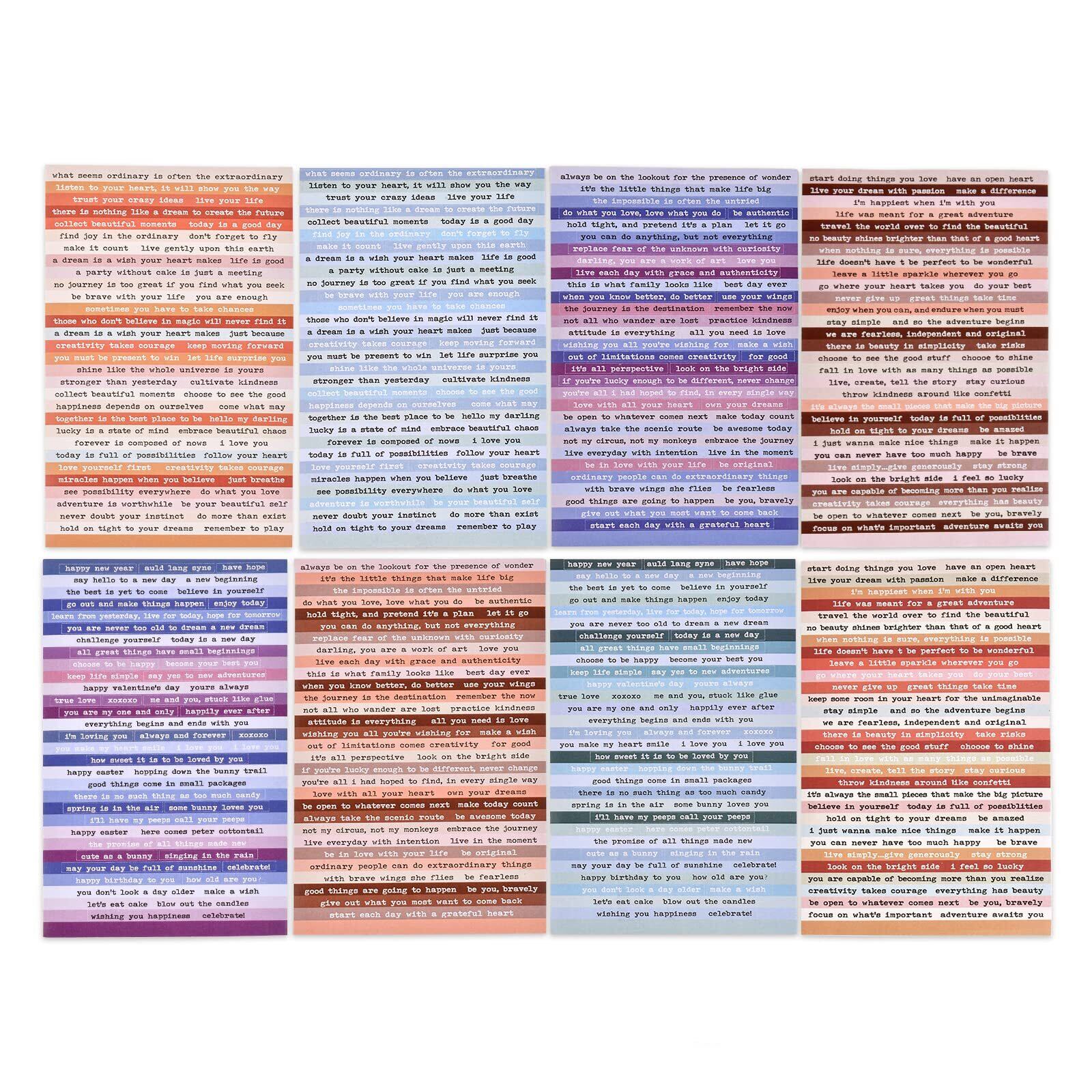 8シート コラージュ 素材 英字シール 8枚 アルファベットシール ジャンクジャーナル フレークシール 文字 英語フレーズ 短文 (カラフル)